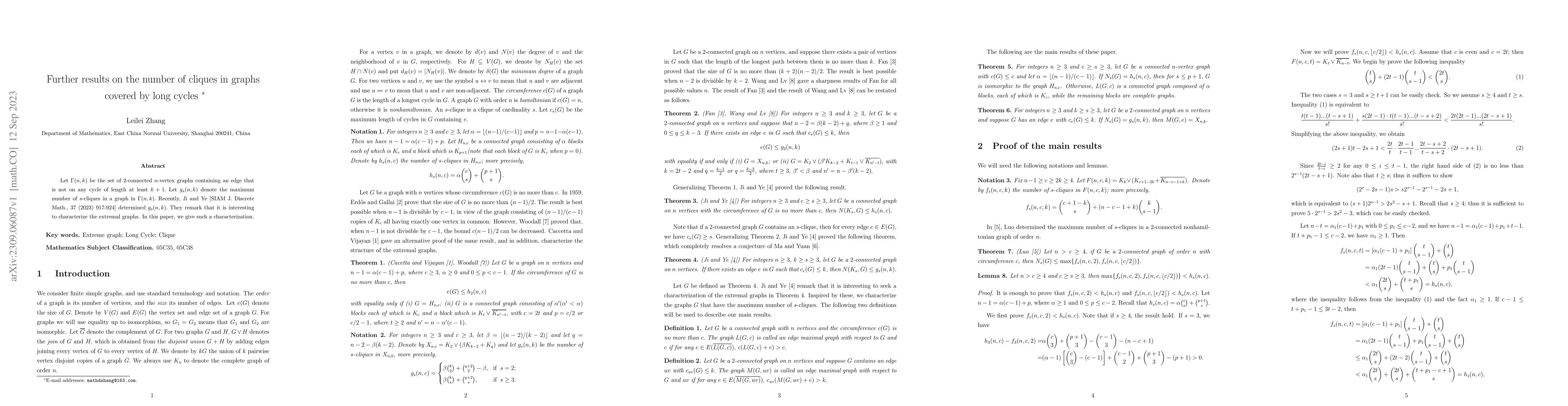 Let $\Gamma(n,k)$ be the set of $2$-connected $n$-vertex graphs containing an edge that is not on any cycle of length at least $k+1.$ Let $g_s(n,k)$ denote the maximum number of $s$-cliques in a graph in $\Gamma(n,k).$ Recently, Ji and Ye [SIAM J. Discrete Math., 37 (2023) 917-924] determined $g_s(n,k).$ They remark that it is interesting to characterize the extremal graphs. In this paper, we give such a characterization.