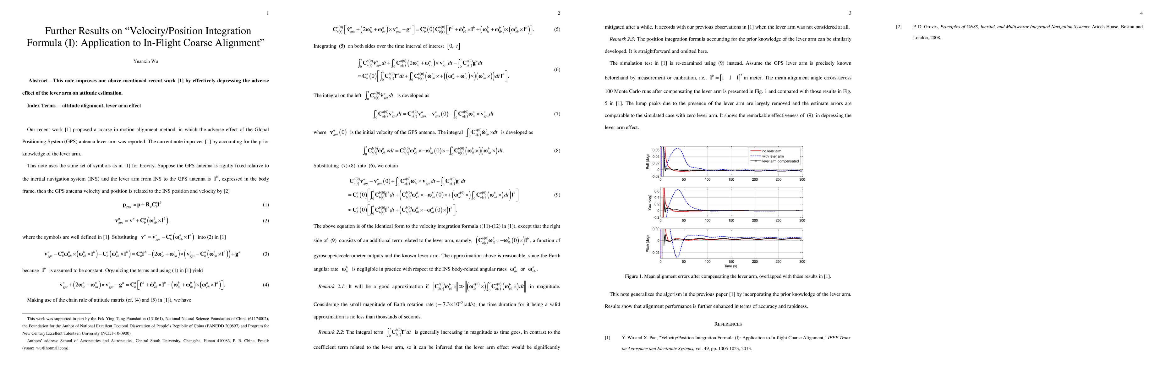 This note improves our above-mentioned recent work by effectively depressing the adverse effect of the lever arm on attitude estimation.