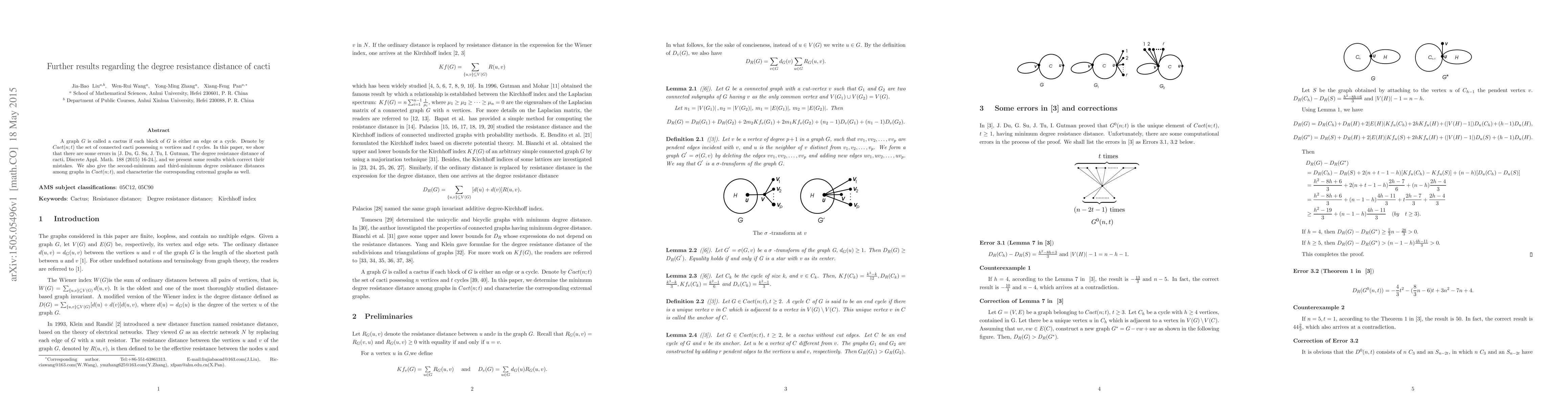 This paper corrects errors in a previous study on the degree resistance distance of cacti and provides the second-minimum and third-minimum degree resistance distances among connected cacti with a specified number of vertices and cycles, along with their extremal characterizations.