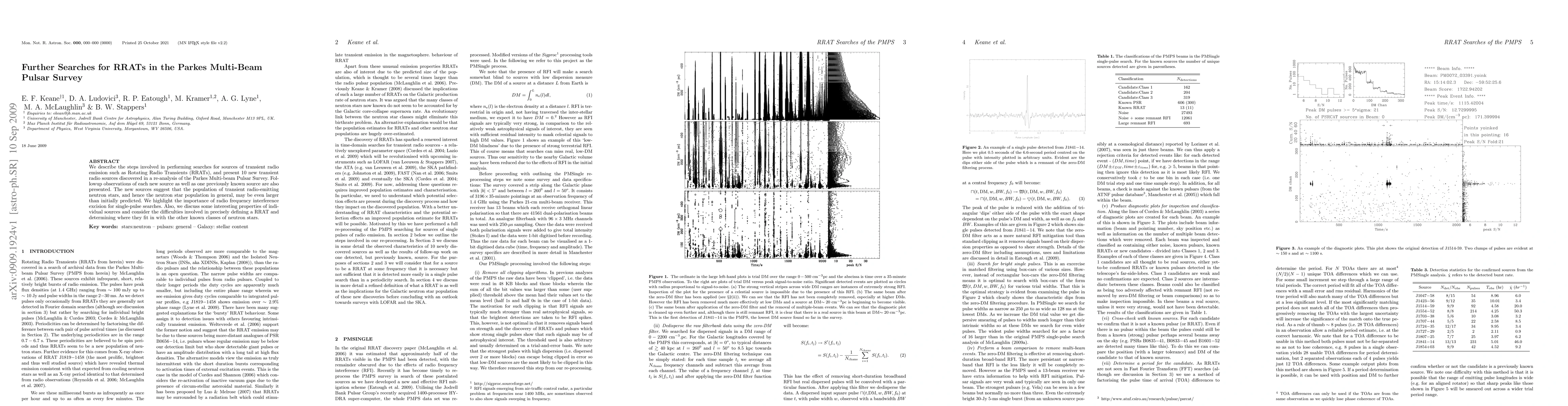 This paper details the process of searching for transient radio sources like Rotating Radio Transients (RRATs) using the Parkes Multi-beam Pulsar Survey. Ten new RRAT sources were discovered, suggesting a larger population of transient radio-emitting neutron stars than previously thought. The study emphasizes the significance of removing radio frequency interference in single-pulse searches and discusses challenges in defining RRATs among neutron star classes.
