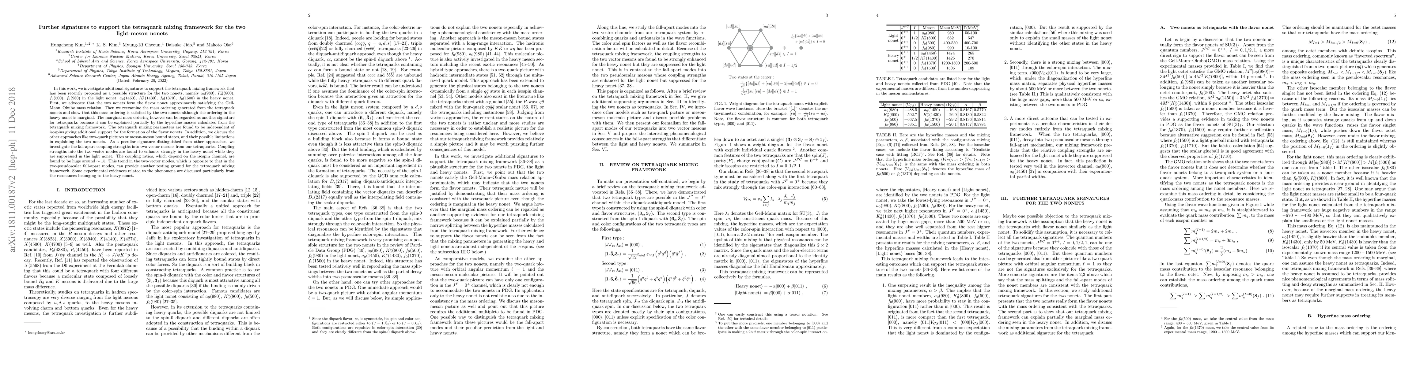 This paper investigates additional signatures supporting the tetraquark mixing framework for two light-meson nonets, showing that the mass ordering aligns with the proposed tetraquark structure, and highlighting distinct coupling strengths into two-vector mesons in the heavy nonet as a unique signature.
