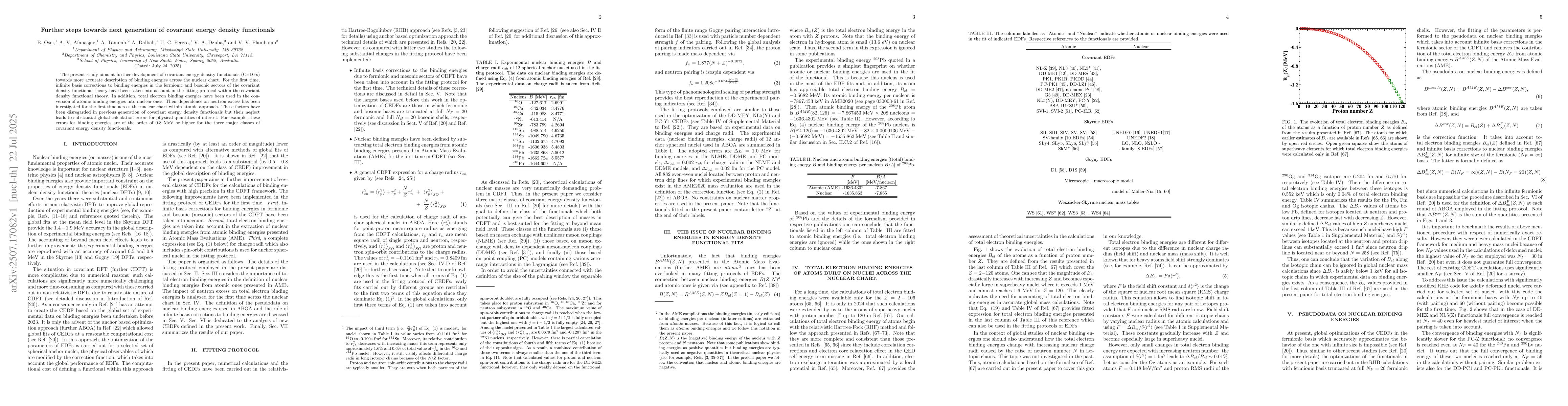 The present study aims at further development of covariant energy density functionals (CEDFs) towards more accurate description of binding energies across the nuclear chart. For the first time, infinite basis corrections to binding energies in the fermionic and bosonic sectors of the covariant density functional theory have been taken into account in the fitting protocol within the covariant density functional theory. In addition, total electron binding energies have been used in the conversion of atomic binding energies into nuclear ones. Their dependence on neutron excess has been investigated for the first time across the nuclear chart within atomic approach. These factors have been disregarded in previous generation of covariant energy density functionals but their neglect leads to substantial global calculation errors for physical quantities of interest. For example, these errors for binding energies are of the order of 0.8 MeV or higher for the three major classes of covariant energy density functionals.
