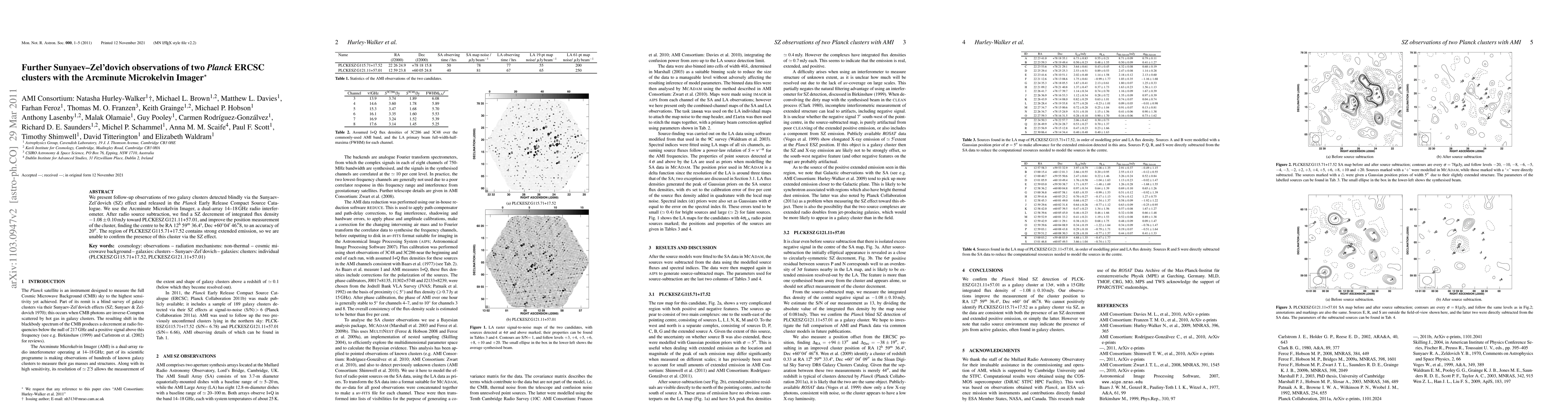 This paper reports follow-up observations of two galaxy clusters using the Arcminute Microkelvin Imager, revealing a SZ decrement for one cluster and improved positional accuracy. The other cluster shows strong extended emission, preventing confirmation via the Sunyaev-Zel'dovich effect.