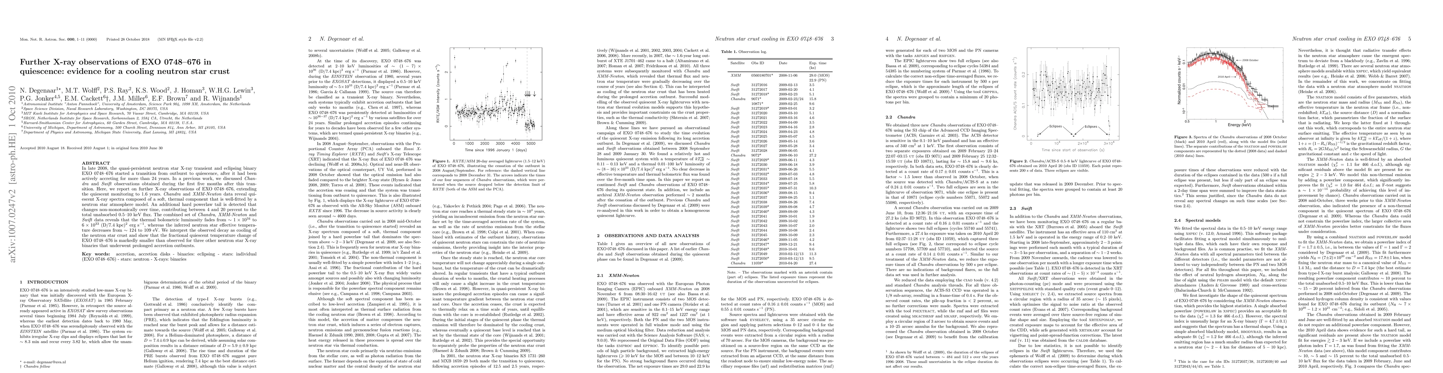 The X-ray transient EXO 0748-676 has cooled over 1.6 years in quiescence, with a decrease in luminosity and temperature that's smaller than other neutron star binaries.