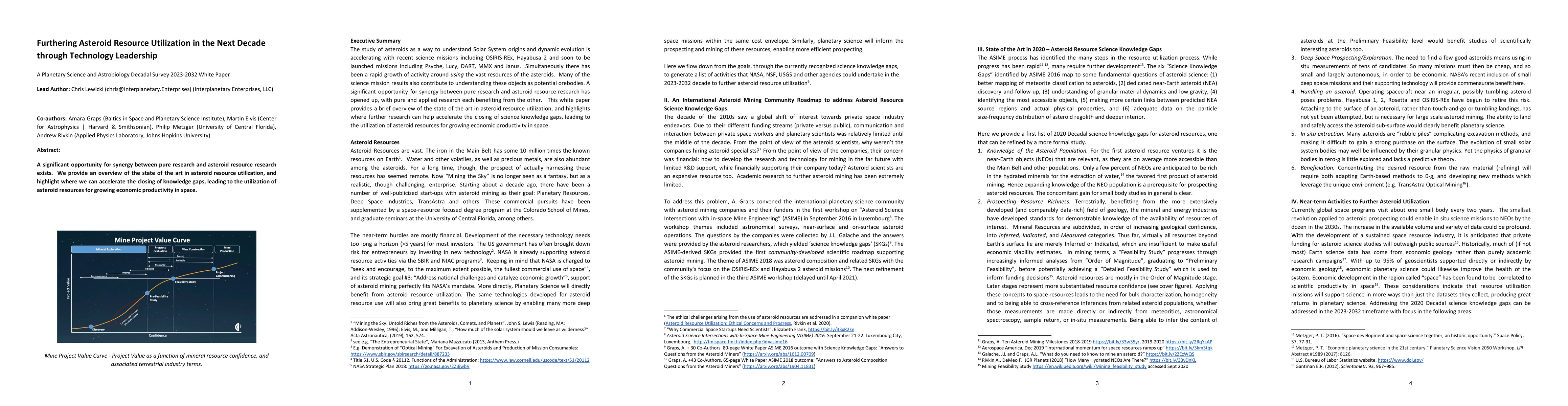 A significant opportunity for synergy between pure research and asteroid resource research exists. We provide an overview of the state of the art in asteroid resource utilization, and highlight where we can accelerate the closing of knowledge gaps, leading to the utilization of asteroid resources for growing economic productivity in space.