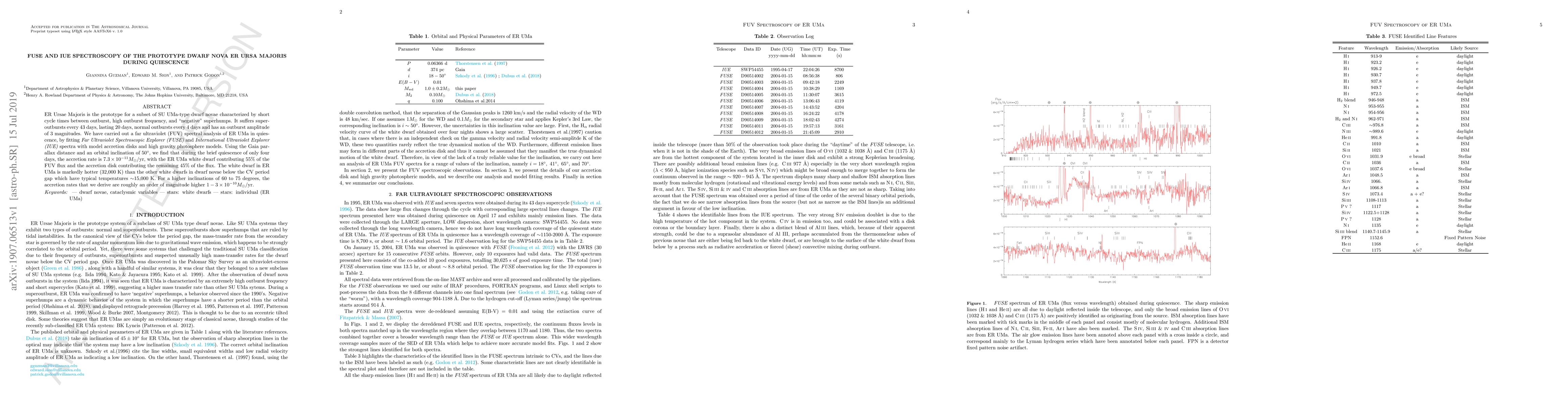 The paper presents a detailed spectral analysis of ER UMa using FUSE and IUE data, applying standard disk and photosphere models to extract key parameters like white dwarf mass, accretion rate, and inclination angle.