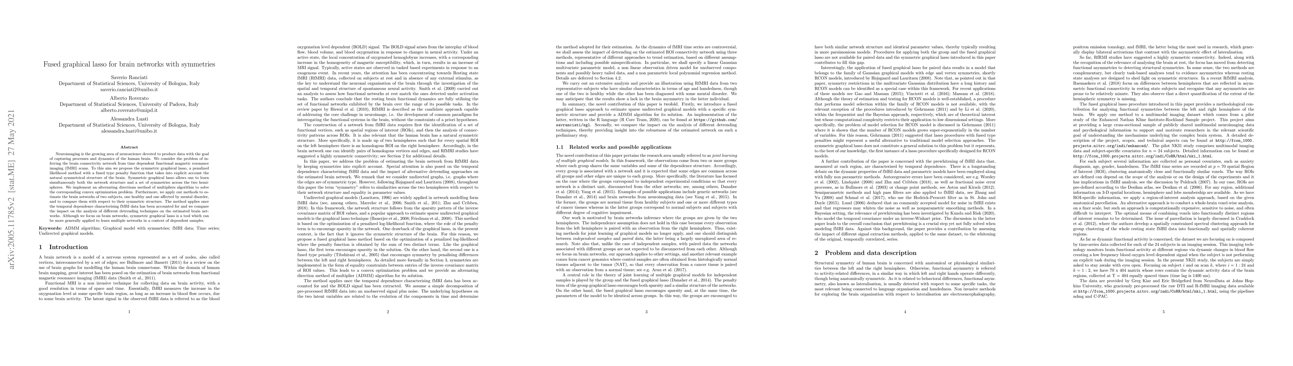 This paper proposes a symmetric graphical lasso method to infer brain connectivity networks from fMRI scans, incorporating a fused penalty to account for the brain's symmetrical structure. The method is applied to compare brain networks from a healthy subject and one with a mental disorder, highlighting the effects of different detrending techniques.