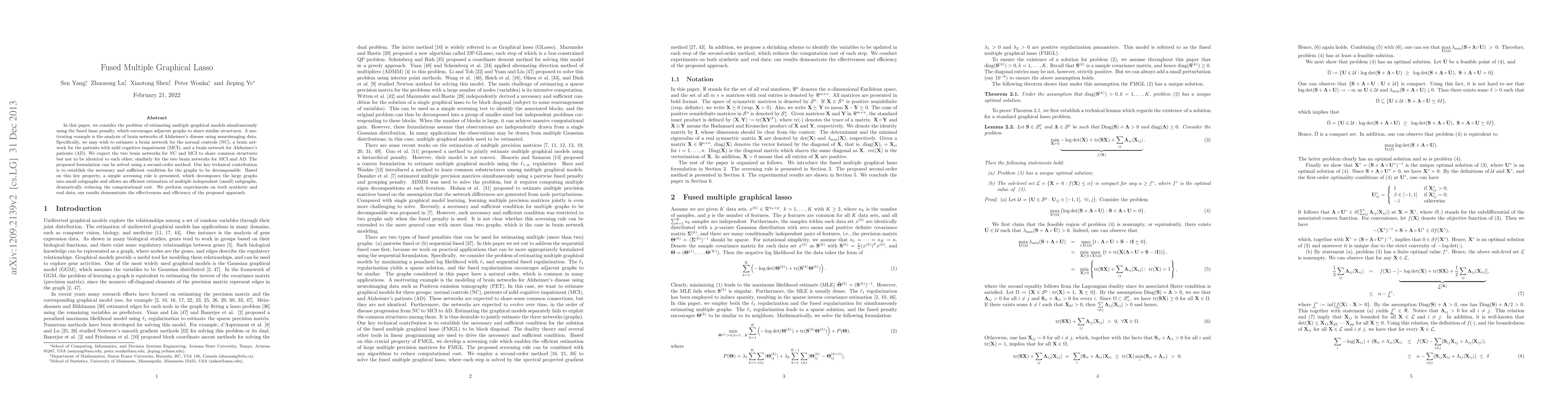 This paper proposes a fused multiple graphical lasso method to estimate multiple graphical models simultaneously, encouraging adjacent graphs to share similar structures. The approach is demonstrated through brain network analysis for Alzheimer's disease, showing effective and efficient decomposition of large graphs into smaller subgraphs, significantly reducing computational costs.
