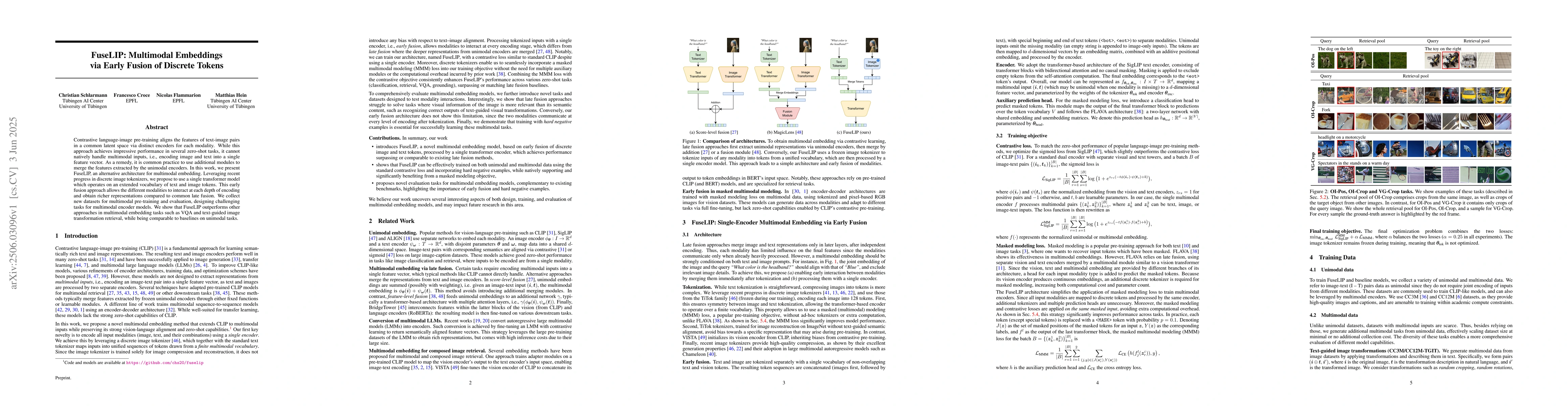 FuseLIP proposes a single transformer model that early fuses text and image tokens to obtain richer multimodal representations, outperforming other approaches in VQA and text-guided image transformation tasks.