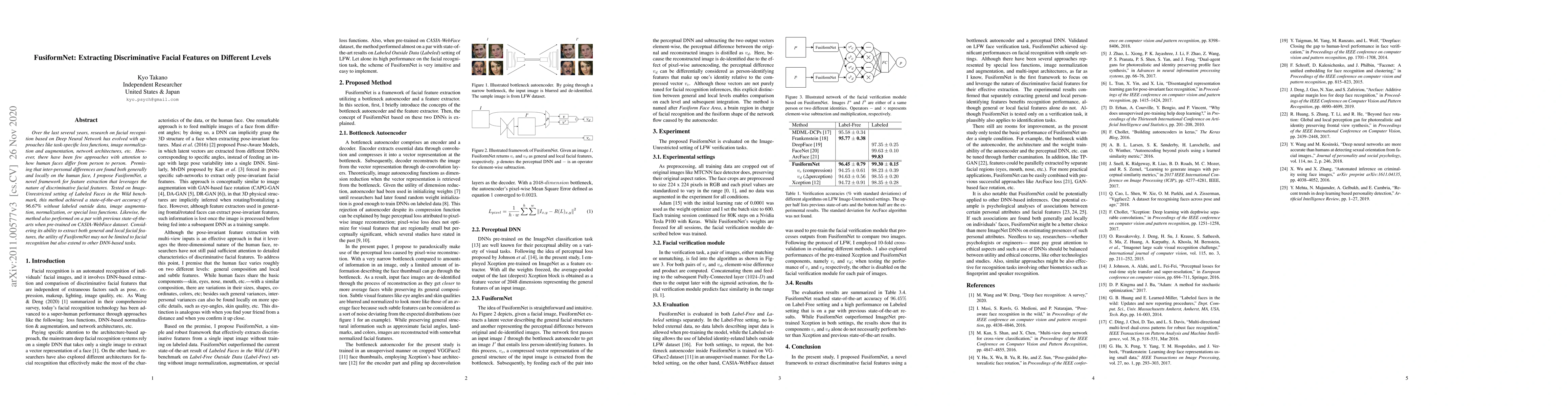 Over the last several years, research on facial recognition based on Deep Neural Network has evolved with approaches like task-specific loss functions, image normalization and augmentation, network architectures, etc. However, there have been few approaches with attention to how human faces differ from person to person. Premising that inter-personal differences are found both generally and locally on the human face, I propose FusiformNet, a novel framework for feature extraction that leverages the nature of discriminative facial features. Tested on Image-Unrestricted setting of Labeled Faces in the Wild benchmark, this method achieved a state-of-the-art accuracy of 96.67% without labeled outside data, image augmentation, normalization, or special loss functions. Likewise, the method also performed on a par with previous state-of-the-arts when pre-trained on CASIA-WebFace dataset. Considering its ability to extract both general and local facial features, the utility of FusiformNet may not be limited to facial recognition but also extend to other DNN-based tasks.
