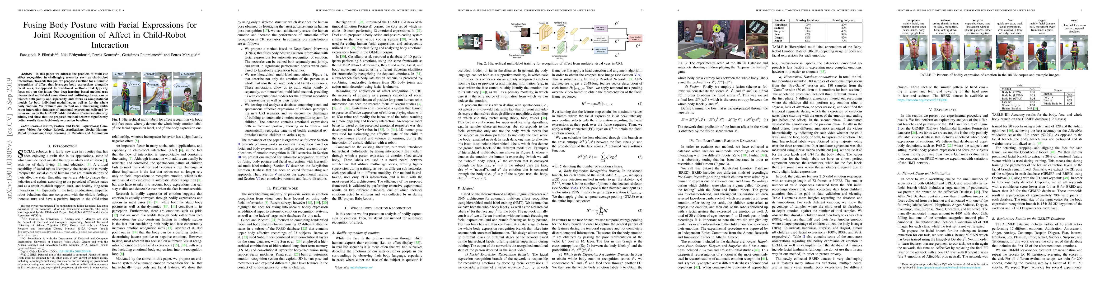 This paper proposes a deep-learning method for recognizing affect in child-robot interactions by fusing body posture and facial expressions, achieving better results than facial-only approaches. The method uses hierarchical multi-label annotations and multi-stage losses, evaluated on both a custom child-robot interaction dataset and a public adult emotion database.