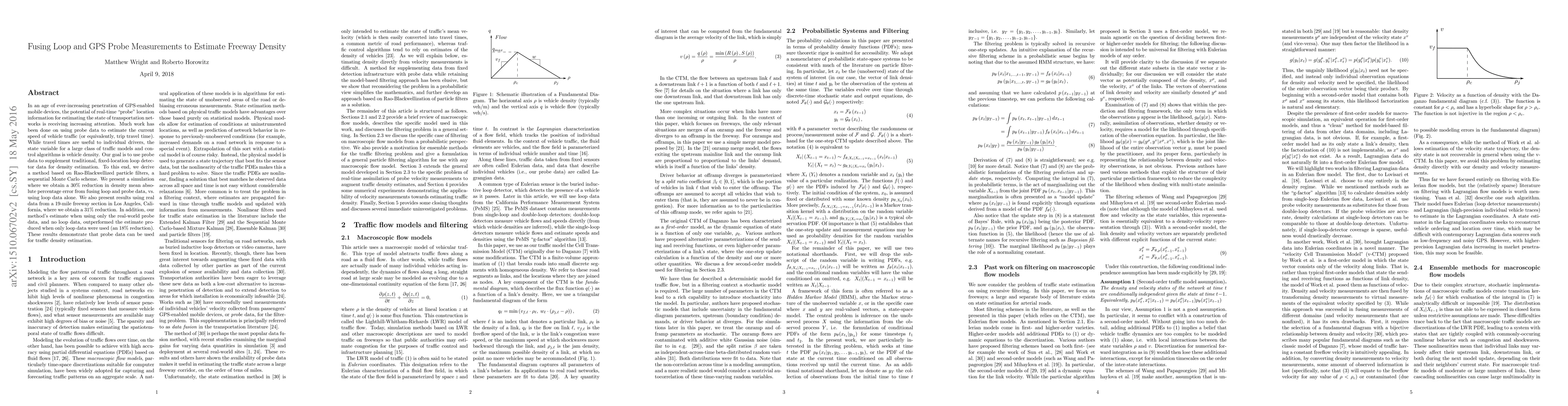This paper proposes a method to estimate freeway vehicle density by fusing GPS probe data with traditional loop detector data, using a Rao-Blackwellized particle filter. The approach shows a 30-31% reduction in density estimation error compared to using loop data alone, demonstrating the value of GPS probe data for traffic density estimation.