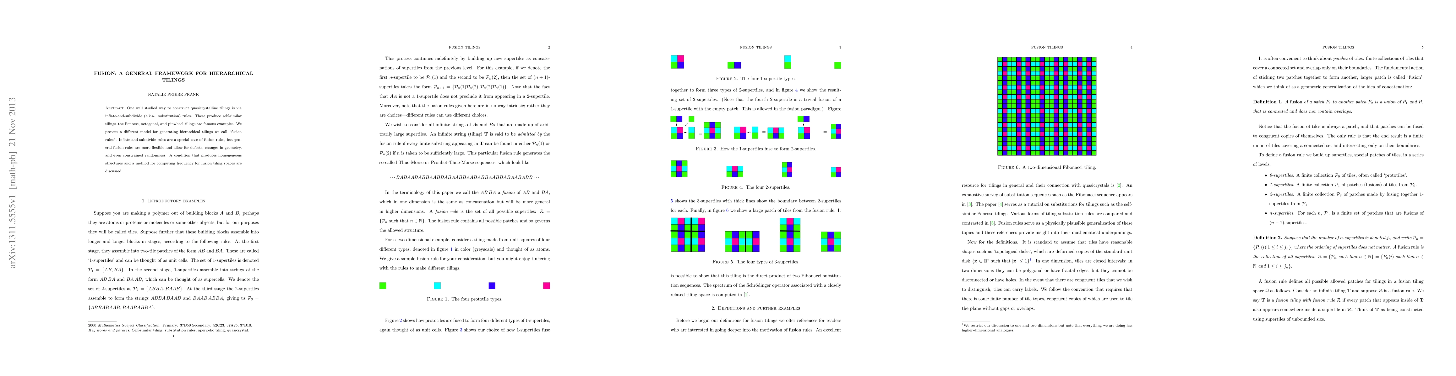This paper introduces "fusion rules" as a general framework for generating hierarchical tilings, offering more flexibility than traditional inflate-and-subdivide methods. It discusses conditions for homogeneous structures and a method for computing frequency in fusion tiling spaces.