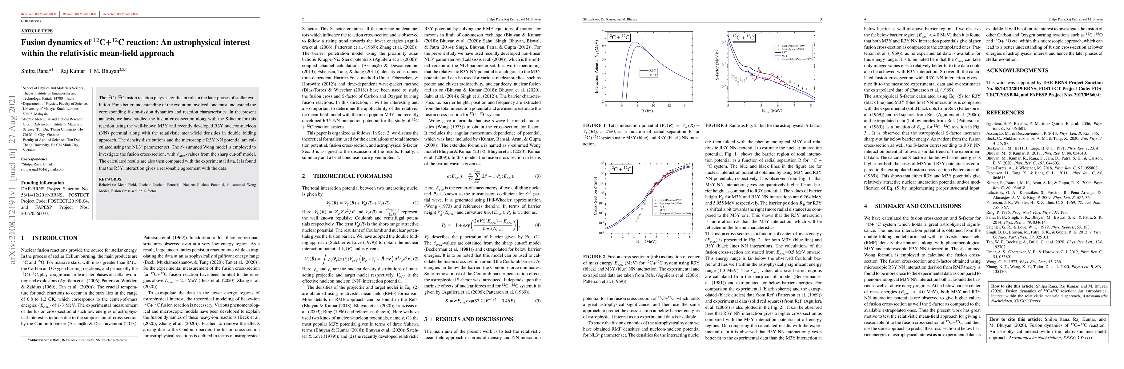 The paper presents a detailed analysis of the $^{12}$C+$^{12}$C fusion reaction using the relativistic mean-field approach with both M3Y and the recently developed R3Y nucleon-nucleon potentials, providing a more accurate description of fusion cross-sections and S-factors.