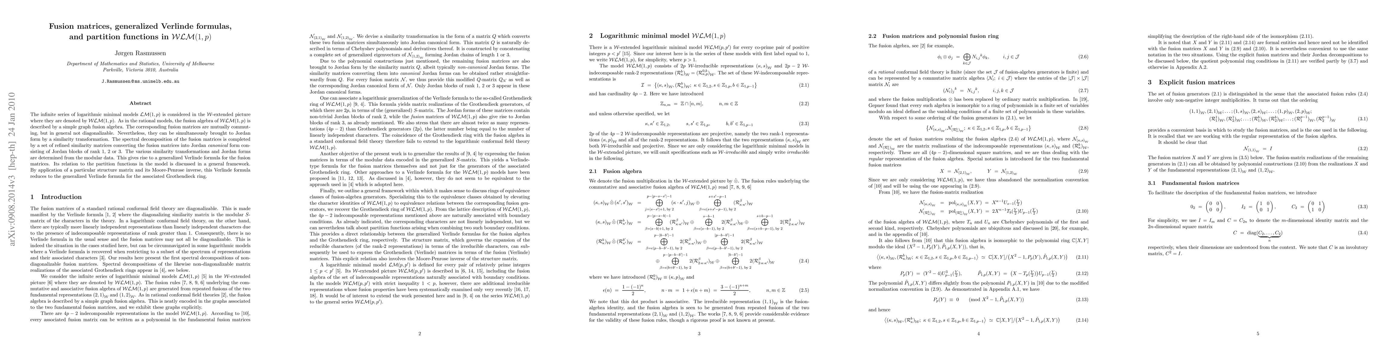 The paper explores the fusion matrices and generalized Verlinde formulas in WLM(1,p), an extended version of logarithmic minimal models, and shows how they can be brought to Jordan form. It relates these matrices to partition functions and derives a generalized Verlinde formula, ultimately linking it to the Grothendieck ring through a specific structure matrix.