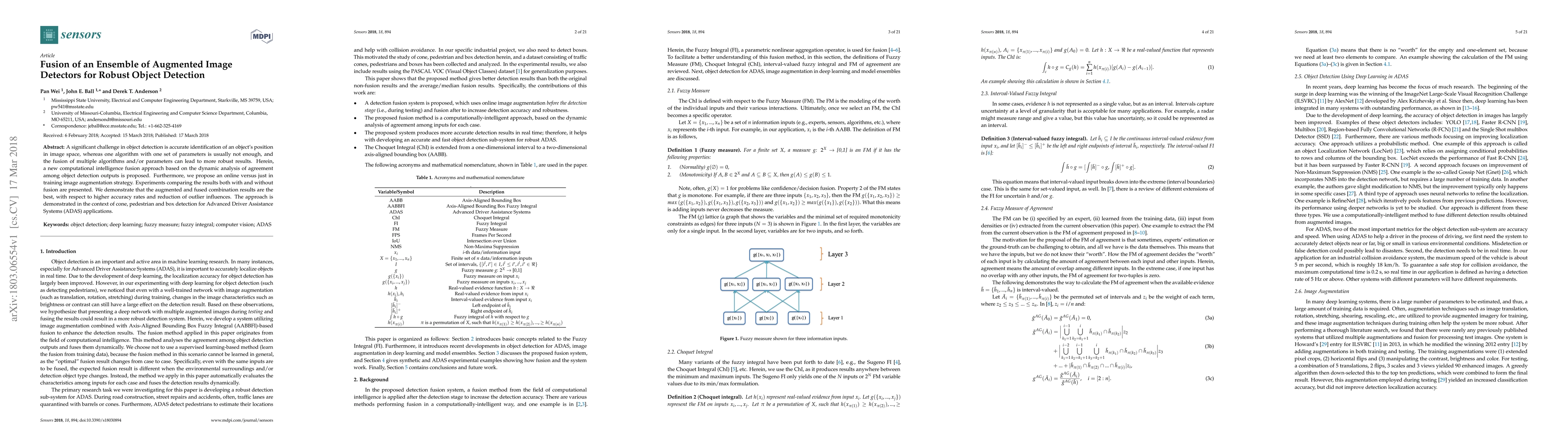 This paper proposes a fusion method combining multiple augmented image detectors to improve object detection accuracy. The approach dynamically analyzes agreement among detection outputs and employs an online augmentation strategy, leading to higher accuracy and reduced outlier influence, demonstrated in ADAS applications for cone, pedestrian, and box detection.