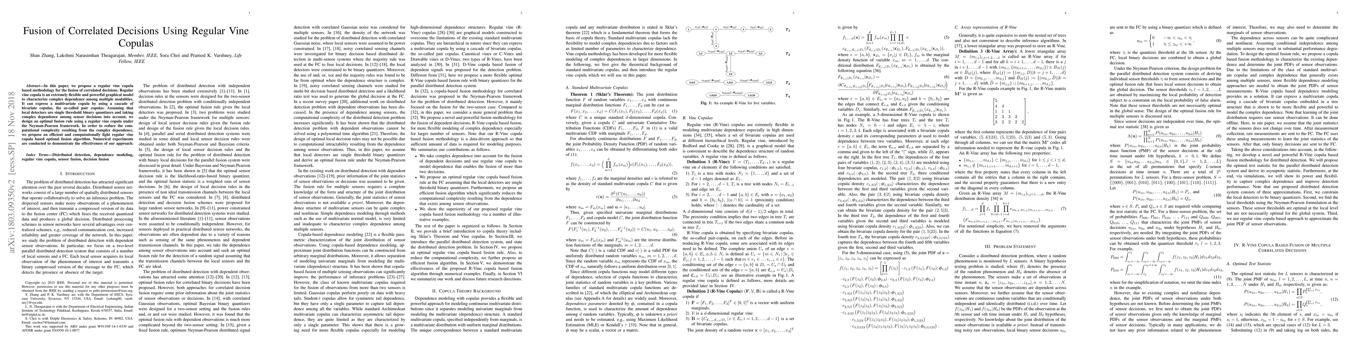 This paper introduces a methodology using regular vine copulas to fuse correlated decisions, leveraging their flexibility to model complex dependencies among multiple modalities. An optimal fusion rule is designed under the Neyman-Pearson framework, with an efficient algorithm proposed to reduce computational complexity, validated by numerical experiments.