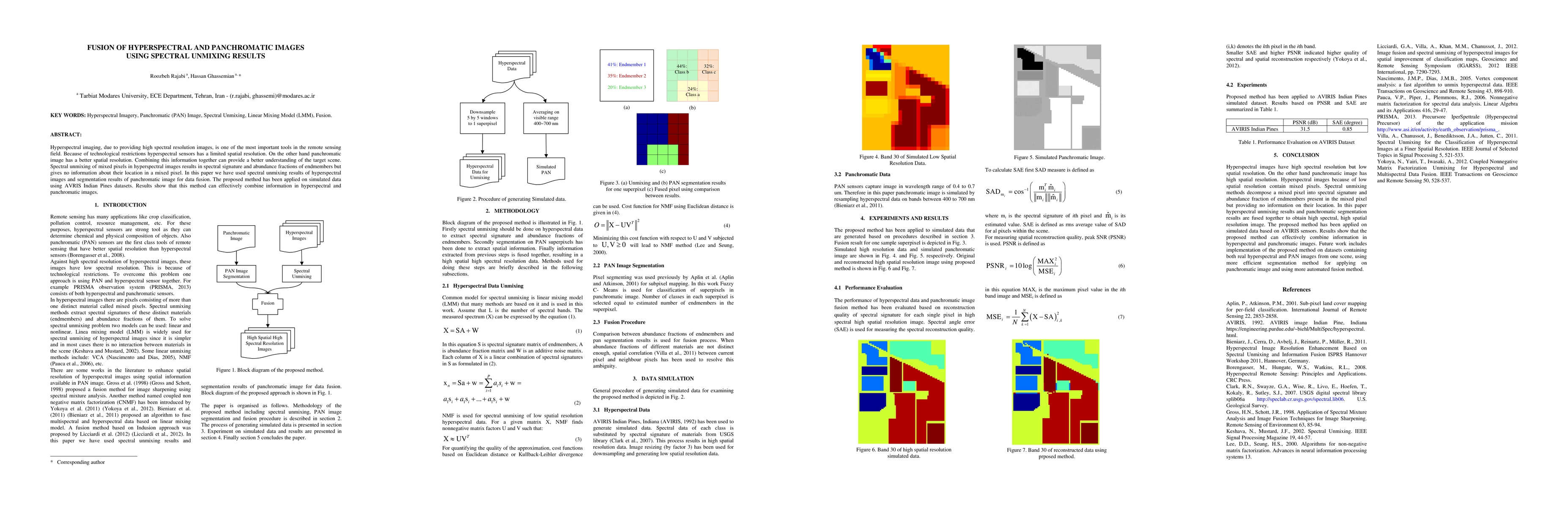 This paper proposes a method to fuse hyperspectral and panchromatic images using spectral unmixing and panchromatic segmentation, demonstrating effective integration of high spectral resolution from hyperspectral data with high spatial resolution from panchromatic images, as validated on the AVRIS Indian Pines dataset.