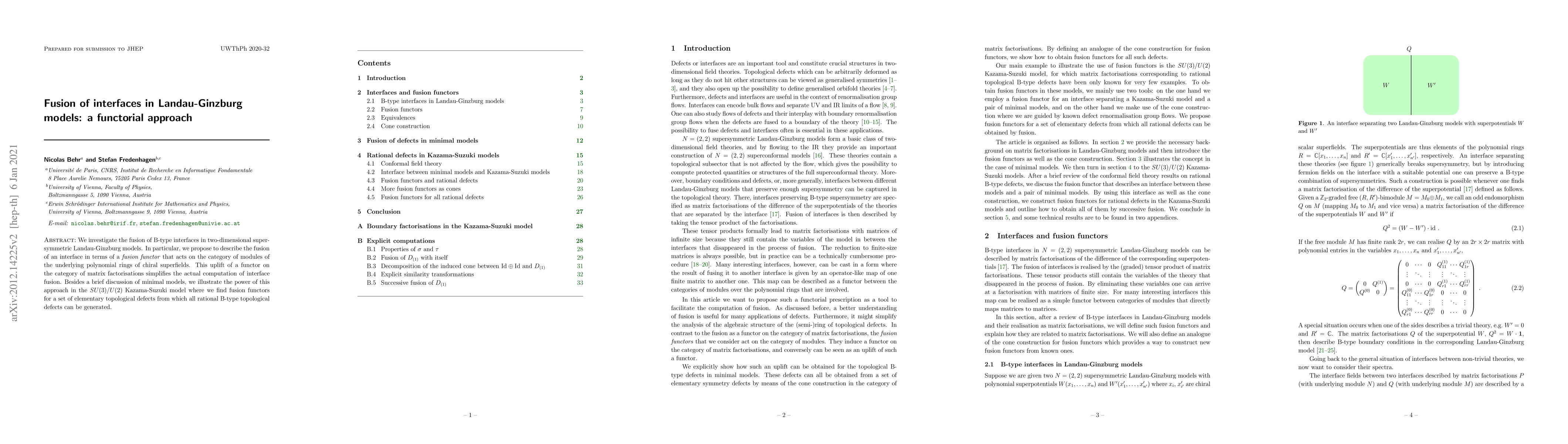 We investigate the fusion of B-type interfaces in two-dimensional supersymmetric Landau-Ginzburg models. In particular, we propose to describe the fusion of an interface in terms of a fusion functor that acts on the category of modules of the underlying polynomial rings of chiral superfields. This uplift of a functor on the category of matrix factorisations simplifies the actual computation of interface fusion. Besides a brief discussion of minimal models, we illustrate the power of this approach in the SU(3)/U(2) Kazama-Suzuki model where we find fusion functors for a set of elementary topological defects from which all rational B-type topological defects can be generated.