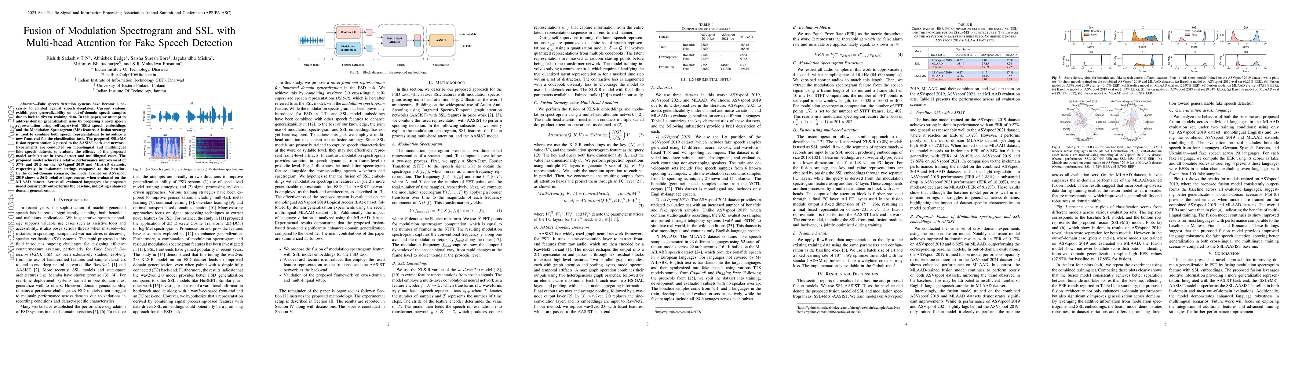 The paper proposes a novel speech representation using self-supervised (SSL) speech embeddings and the Modulation Spectrogram (MS) feature for fake speech detection. A fusion strategy combines both speech representations using a multi-head attention mechanism as the front-end, which is then passed to the AASIST back-end network.
