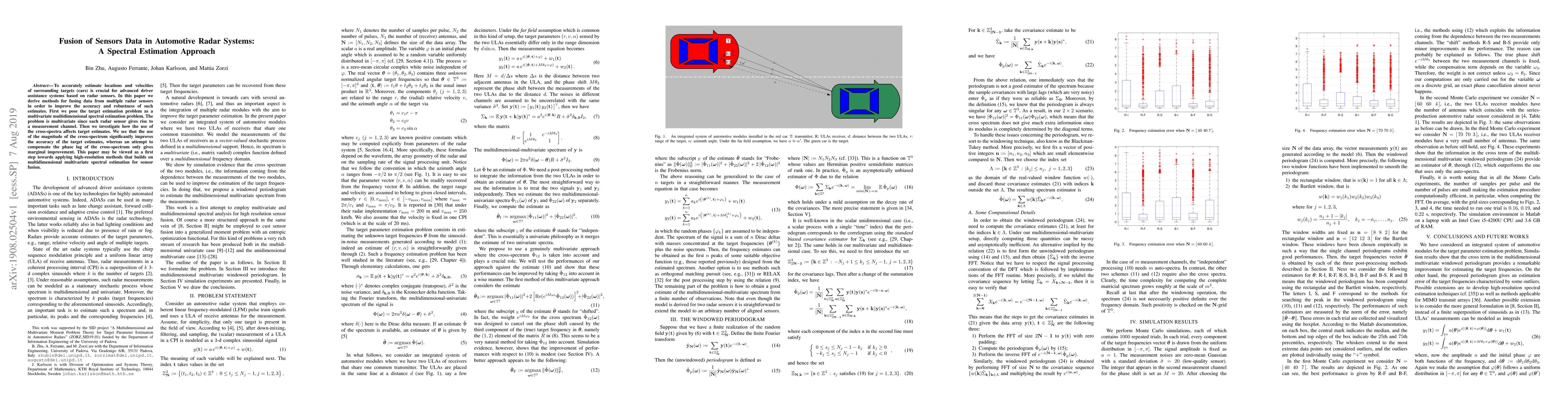 Researchers developed a method to fuse data from multiple radar sensors for more accurate target location and velocity estimates in autonomous vehicles. The use of cross-spectrum magnitude improves accuracy significantly.