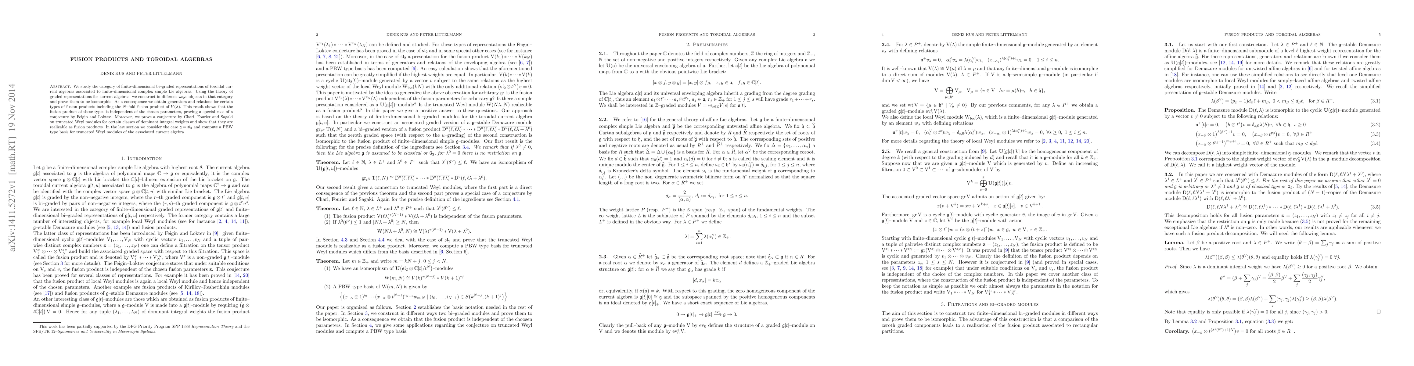 This paper explores finite-dimensional bi-graded representations of toroidal current algebras linked to simple Lie algebras, constructs and proves isomorphisms for various objects in this category, and establishes generators and relations for fusion products, confirming a conjecture by Feigin and Loktev. Additionally, it verifies a conjecture by Chari, Fourier, and Sagaki regarding truncated Weyl modules and computes a PBW basis for $\mathfrak{sl}_2$ truncated Weyl modules.