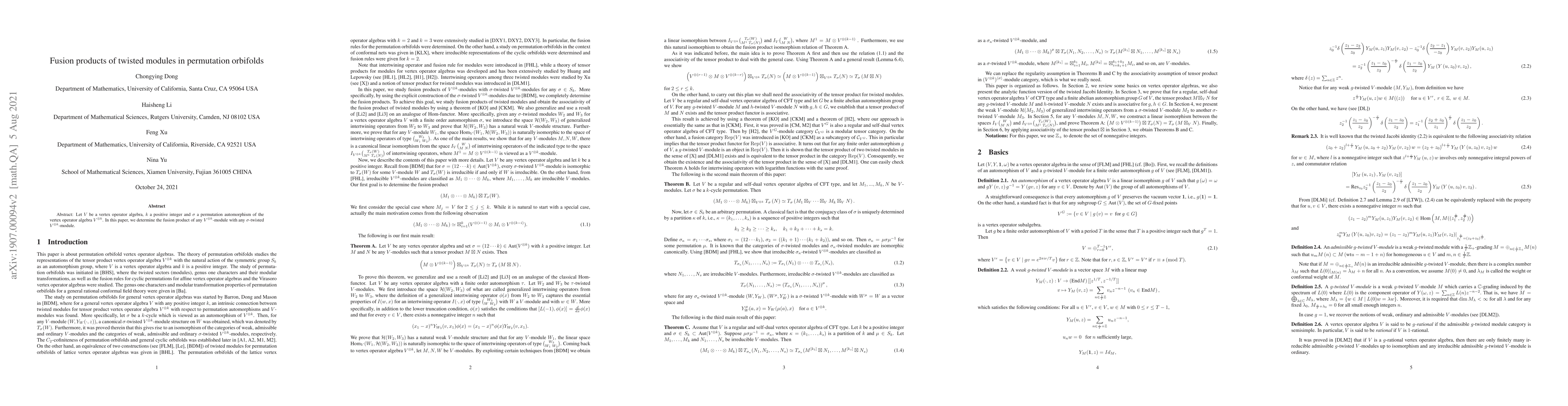 This research paper identifies the fusion product of any module in a tensor product of a vertex operator algebra V with itself k times, with any module twisted by a permutation automorphism sigma. The methodology involves advanced algebraic techniques in vertex operator algebra theory, with implications for understanding module structures in orbifold constructions.