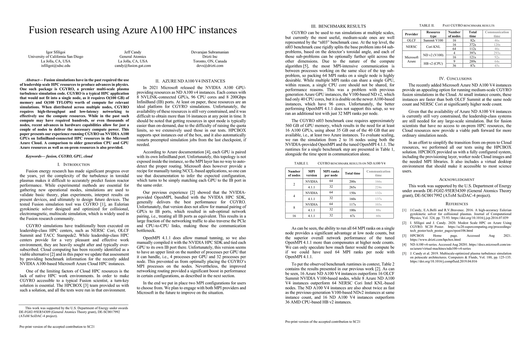 Researchers successfully ran a complex plasma simulation code on Azure A100 HPC instances, achieving faster results than older CPU and GPU resources, and demonstrating the potential for cloud-based fusion research.