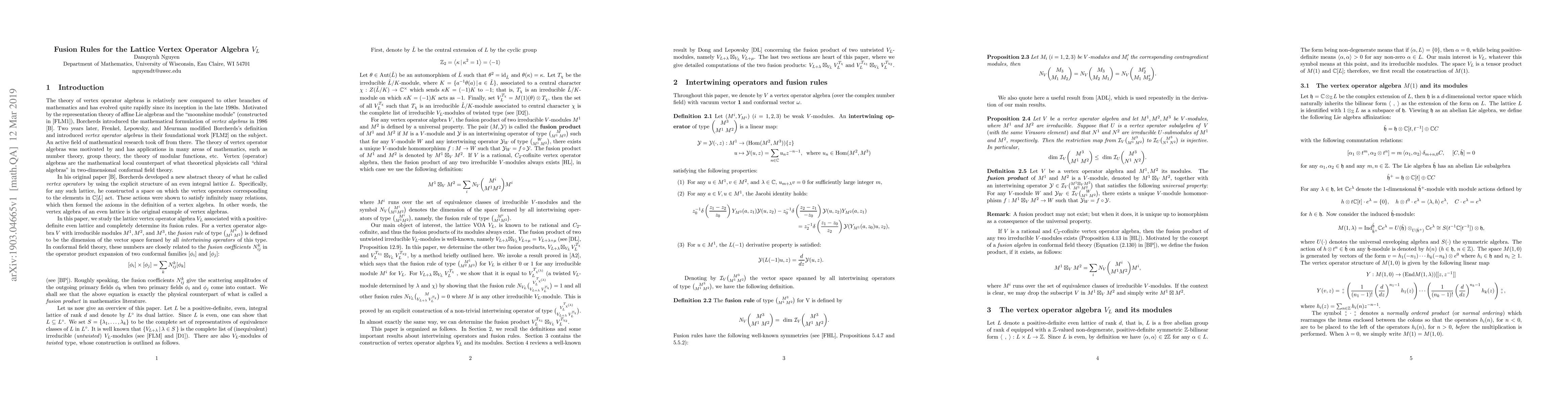 This paper investigates the fusion rules for the lattice vertex operator algebra $V_L$ associated with a positive-definite, even, integral lattice $L$. It determines the fusion products for untwisted irreducible $V_L$-modules, specifically $V_{L+\lambda} \boxtimes_{V_L} V_L^{T_{\chi}}$ and $V_L^{T_{\chi_1}} \boxtimes_{V_L} V_L^{T_{\chi_2}}$, extending beyond the known fusion product $V_{L+\lambda} \boxtimes_{V_L} V_{L+\mu} = V_{L + \lambda + \mu}$.