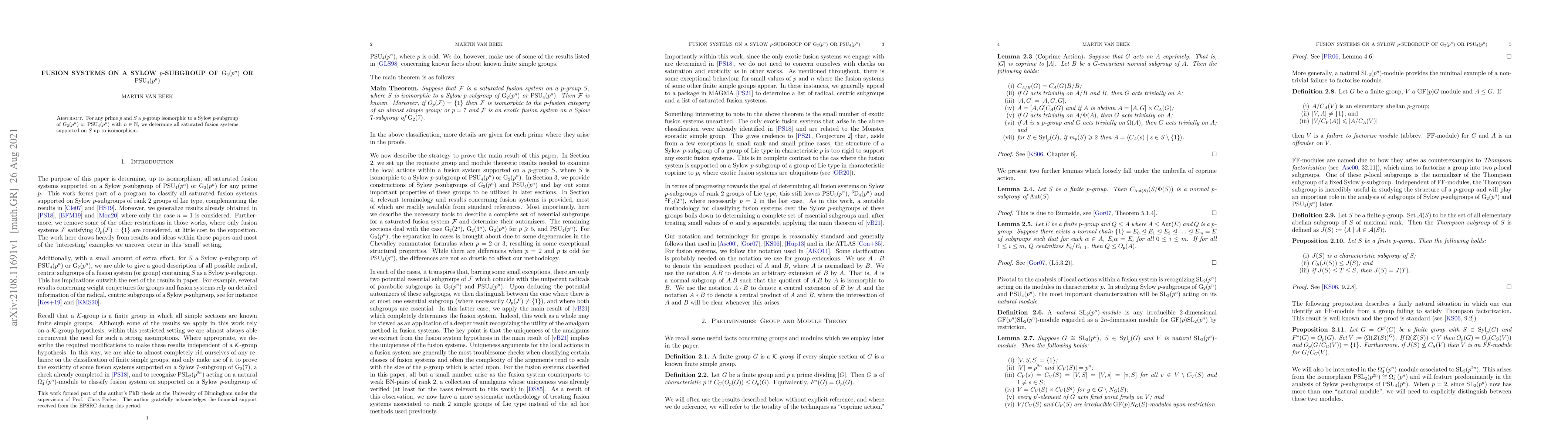 Researchers studied fusion systems on Sylow $p$-subgroups of $ ext{G}_2(p^n)$ or $ ext{PSU}_4(p^n)$. They determined all saturated fusion systems supported on these subgroups up to isomorphism for any prime $p$.