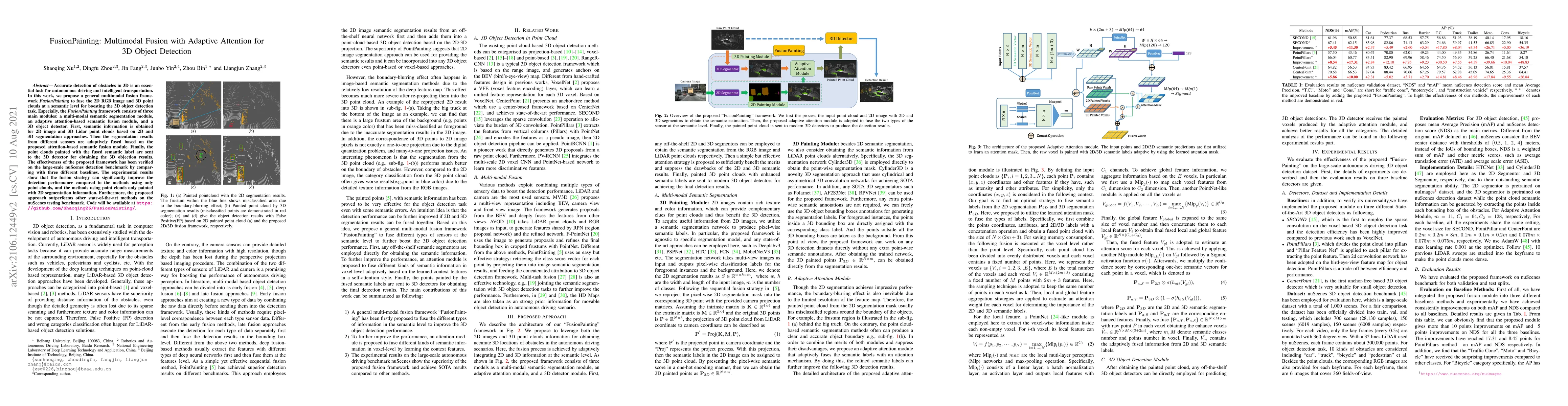 FusionPainting proposes a multimodal fusion framework to enhance 3D object detection by combining 2D RGB images and 3D point clouds through adaptive attention-based semantic fusion, significantly improving detection performance over traditional methods. The approach outperforms state-of-the-art methods on the nuScenes benchmark.