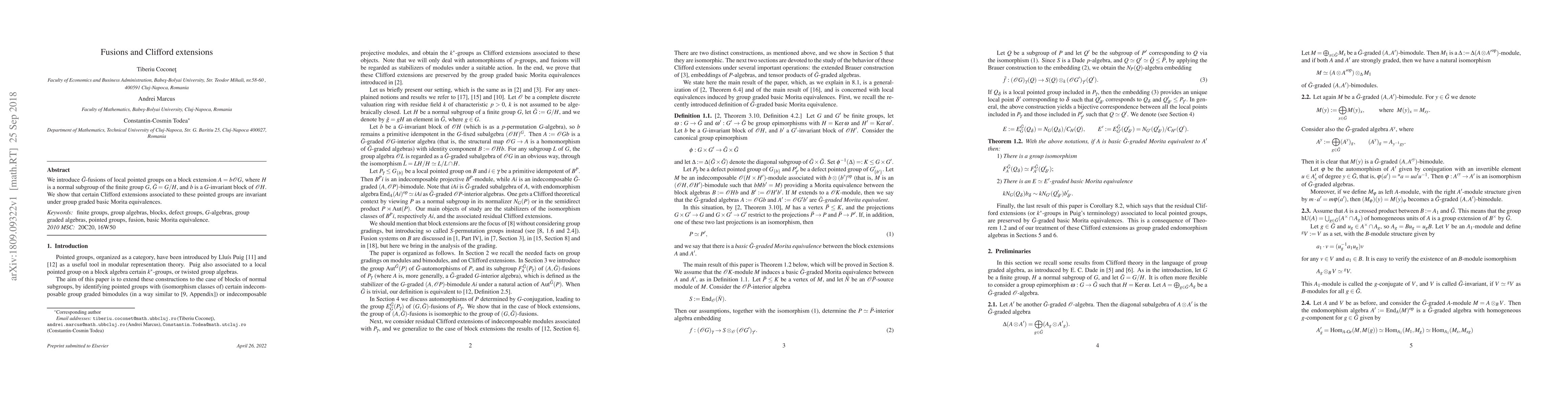 We introduce $\bar G$-fusions of local pointed groups on a block extension $A=b\mathcal{O}G$, where $H$ is a normal subgroup of the finite group $G$, $\bar G=G/H$, and $b$ is a $G$-invariant block of $\mathcal{O}H$. We show that certain Clifford extensions associated to these pointed groups are invariant under group graded basic Morita equivalences.