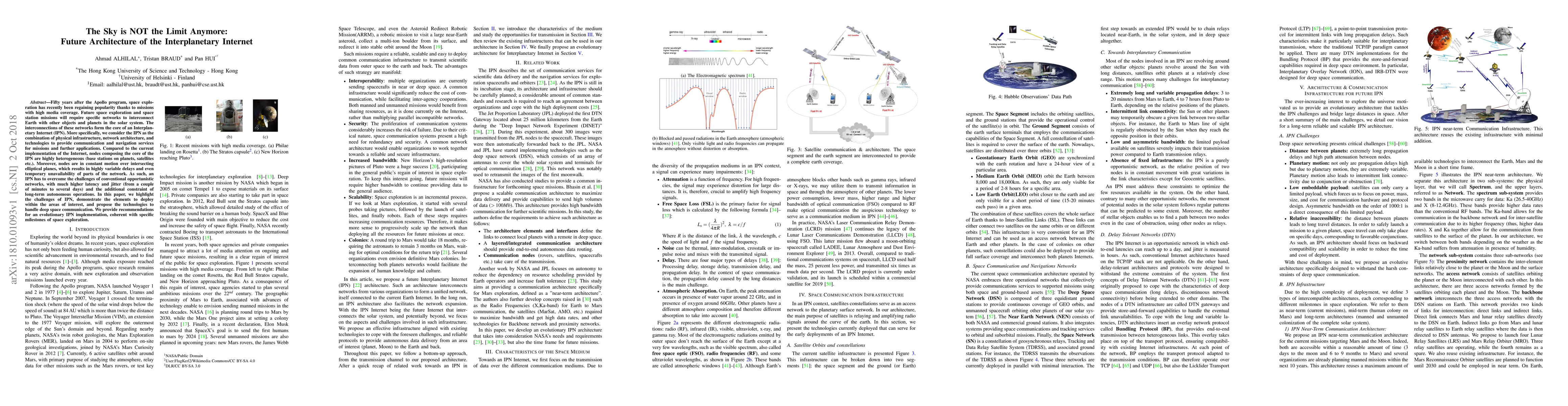 This paper discusses the challenges and solutions for creating an Interplanetary Internet (IPN) to connect Earth with space objects and planets. It highlights the unique difficulties posed by highly heterogeneous, mobile nodes and significant latency, proposing technologies for deep space communication and recommending an evolutionary implementation aligned with space exploration milestones.