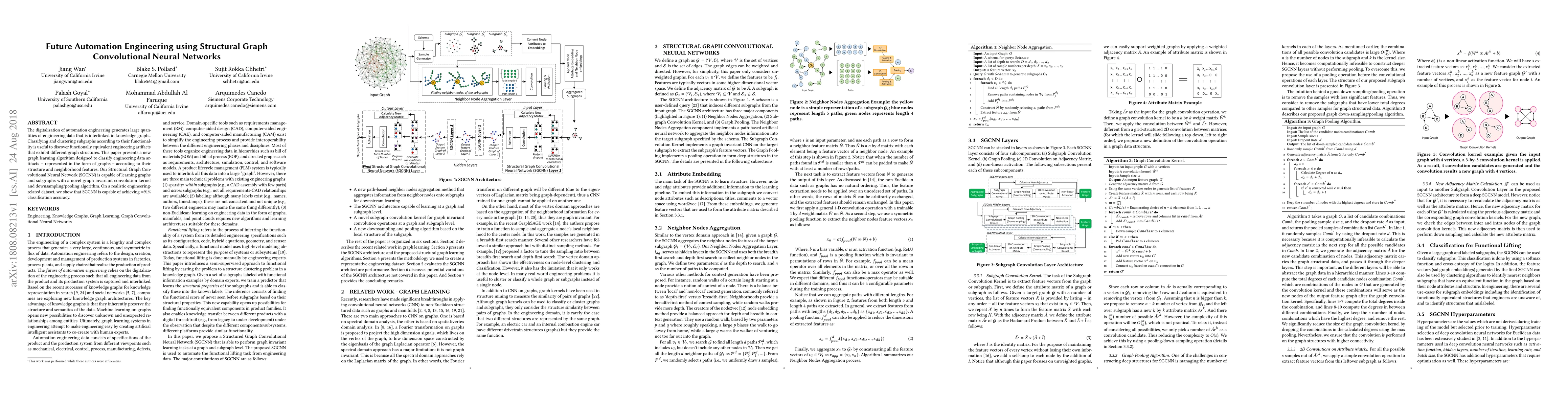 The digitalization of automation engineering generates large quantities of engineering data that is interlinked in knowledge graphs. Classifying and clustering subgraphs according to their functionality is useful to discover functionally equivalent engineering artifacts that exhibit different graph structures. This paper presents a new graph learning algorithm designed to classify engineering data artifacts -- represented in the form of graphs -- according to their structure and neighborhood features. Our Structural Graph Convolutional Neural Network (SGCNN) is capable of learning graphs and subgraphs with a novel graph invariant convolution kernel and downsampling/pooling algorithm. On a realistic engineering-related dataset, we show that SGCNN is capable of achieving ~91% classification accuracy.