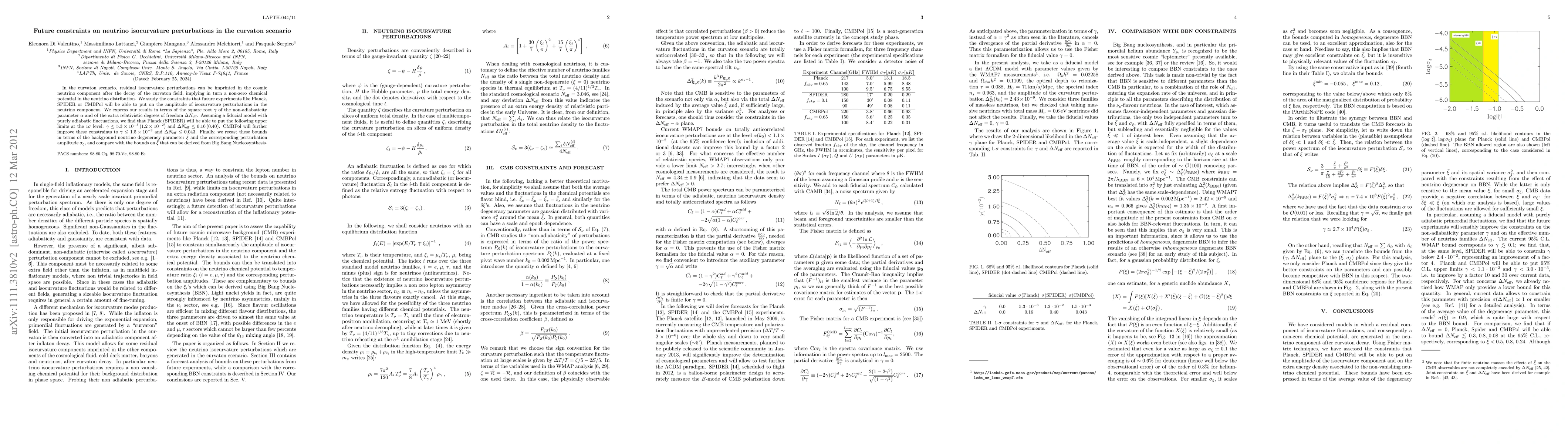 This paper investigates future constraints on neutrino isocurvature perturbations in the curvaton scenario, predicting non-zero chemical potentials in neutrinos. It finds that upcoming experiments like Planck, SPIDER, and CMBPol will significantly limit the amplitude of these perturbations, with CMBPol providing the most stringent constraints.