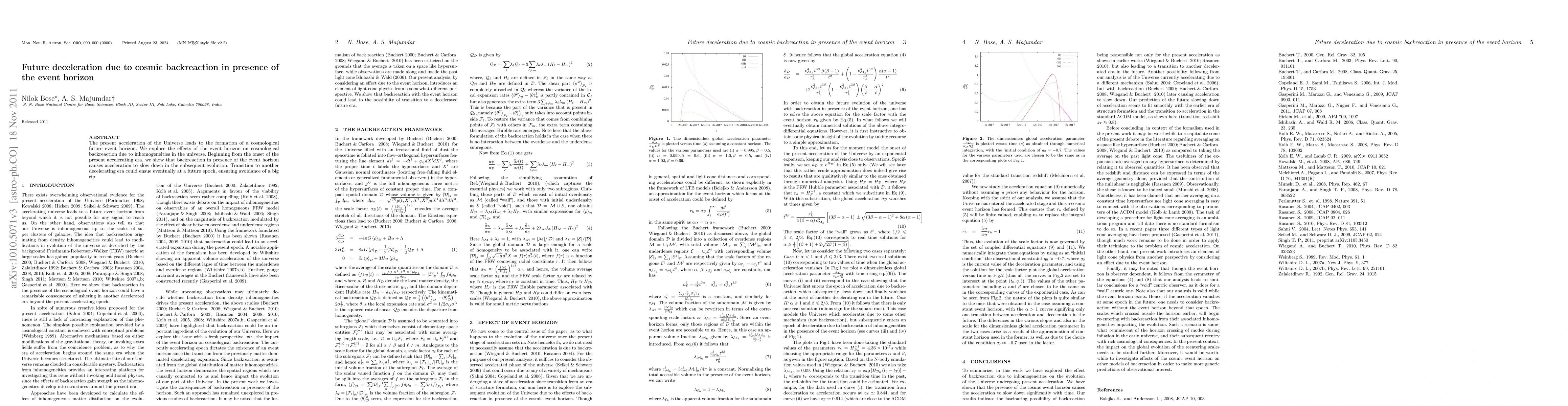 This paper investigates how the formation of a cosmological future event horizon due to the universe's current acceleration influences cosmic backreaction from inhomogeneities, demonstrating that this backreaction leads to eventual deceleration, preventing a big rip scenario.
