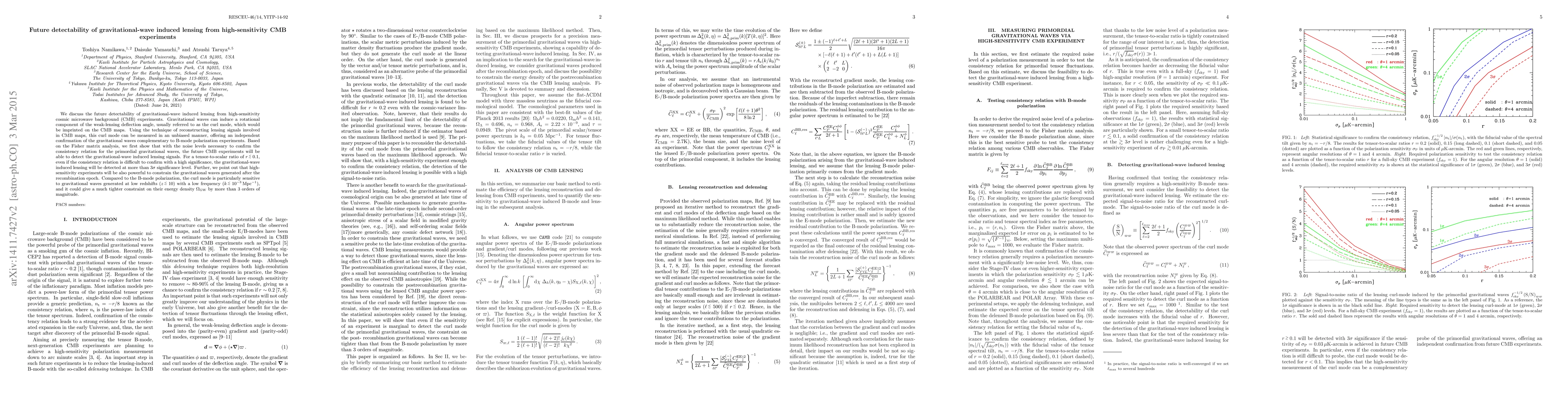 This paper explores the future detectability of gravitational-wave induced lensing from high-sensitivity CMB experiments, showing that these experiments can detect the gravitational-wave curl mode at more than $3\,\sigma$ significance for $r < 0.1$. It highlights that this method provides a complementary and more sensitive constraint on low-frequency gravitational waves generated after recombination compared to B-mode polarization.