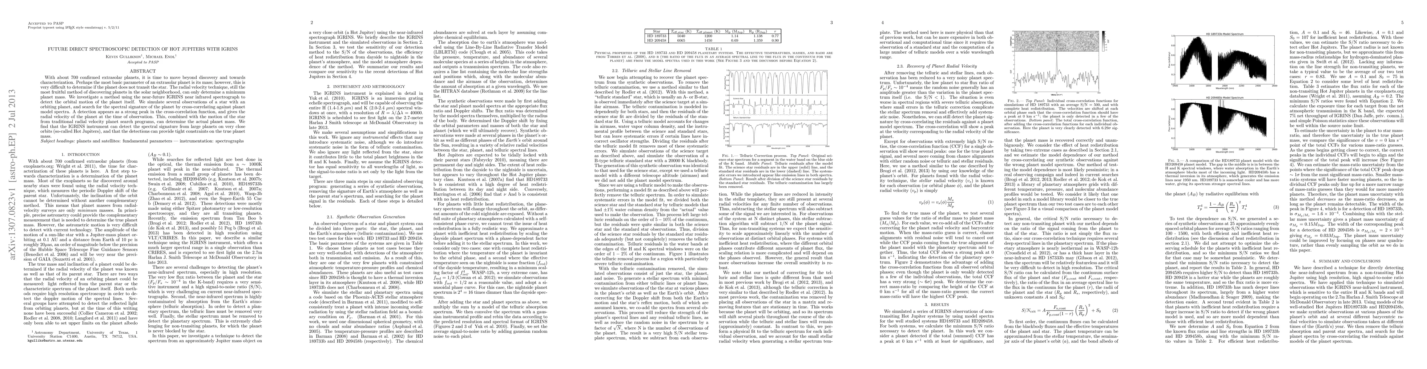 This paper explores using the IGRINS near-infrared spectrograph to detect the orbital motion of Hot Jupiters directly, enabling the determination of their actual mass. Simulations indicate that IGRINS can identify the spectral signature of large planets in close orbits, providing crucial mass constraints.