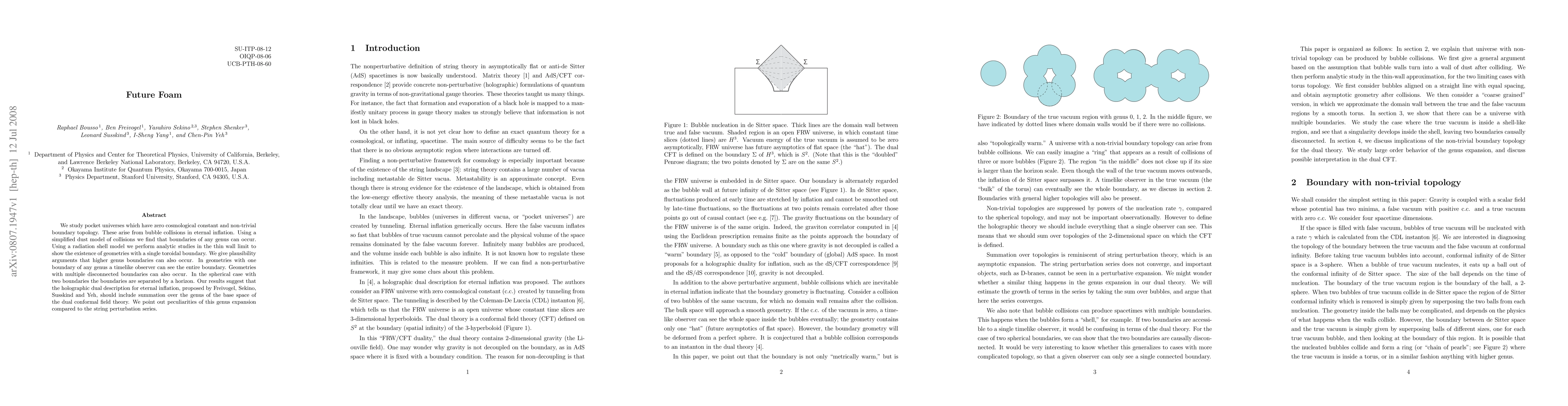 We study pocket universes which have zero cosmological constant and non-trivial boundary topology. These arise from bubble collisions in eternal inflation. Using a simplified dust model of collisions we find that boundaries of any genus can occur. Using a radiation shell model we perform analytic studies in the thin wall limit to show the existence of geometries with a single toroidal boundary. We give plausibility arguments that higher genus boundaries can also occur. In geometries with one boundary of any genus a timelike observer can see the entire boundary. Geometries with multiple disconnected boundaries can also occur. In the spherical case with two boundaries the boundaries are separated by a horizon. Our results suggest that the holographic dual description for eternal inflation, proposed by Freivogel, Sekino, Susskind and Yeh, should include summation over the genus of the base space of the dual conformal field theory. We point out peculiarities of this genus expansion compared to the string perturbation series.