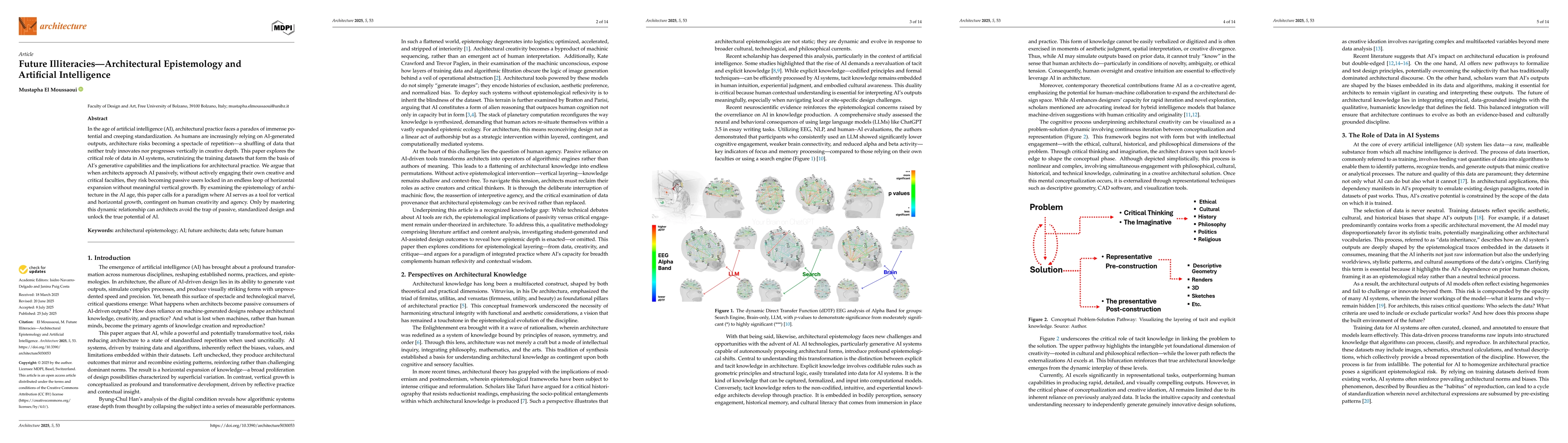 In the age of artificial intelligence, architectural practice faces a paradox of immense potential and creeping standardization. As humans are increasingly relying on AI-generated outputs, architecture risks becoming a spectacle of repetition- a shuffling of data that neither truly innovates nor progresses vertically in creative depth. This paper explores the critical role of data in AI systems, scrutinizing the training datasets that form the basis of AI's generative capabilities and the implications for architectural practice. We argue that when architects approach AI passively, without actively engaging their own creative and critical faculties, they risk becoming passive users locked in an endless loop of horizontal expansion without meaningful vertical growth. By examining the epistemology of architecture in the AI age, this paper calls for a paradigm where AI serves as a tool for vertical and horizontal growth, contingent on human creativity and agency. Only by mastering this dynamic relationship can architects avoid the trap of passive, standardized design and unlock the true potential of AI.