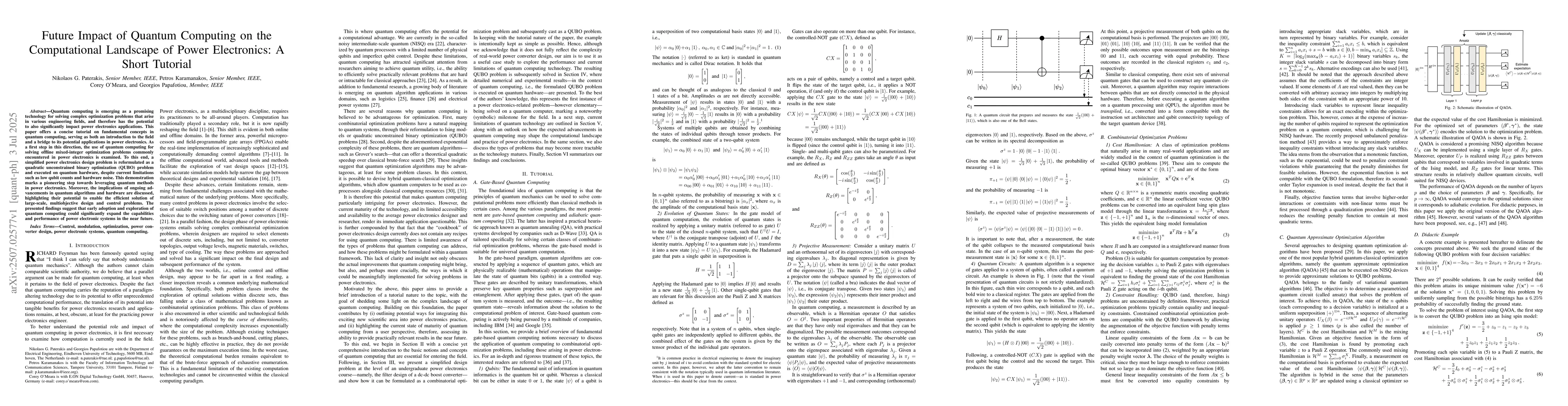 Quantum computing is emerging as a promising technology for solving complex optimization problems that arise in various engineering fields, and therefore has the potential to also significantly impact power electronics applications. This paper offers a concise tutorial on fundamental concepts in quantum computing, serving as both an introduction to the field and a bridge to its potential applications in power electronics. As a first step in this direction, the use of quantum computing for solving offline mixed-integer optimization problems commonly encountered in power electronics is examined. To this end, a simplified power electronics design problem is reformulated as a quadratic unconstrained binary optimization (QUBO) problem and executed on quantum hardware, despite current limitations such as low qubit counts and hardware noise. This demonstration marks a pioneering step towards leveraging quantum methods in power electronics. Moreover, the implications of ongoing advancements in quantum algorithms and hardware are discussed, highlighting their potential to enable the efficient solution of large-scale, multiobjective design and control problems. The presented findings suggest that early adoption and exploration of quantum computing could significantly expand the capabilities and performance of power electronic systems in the near future.