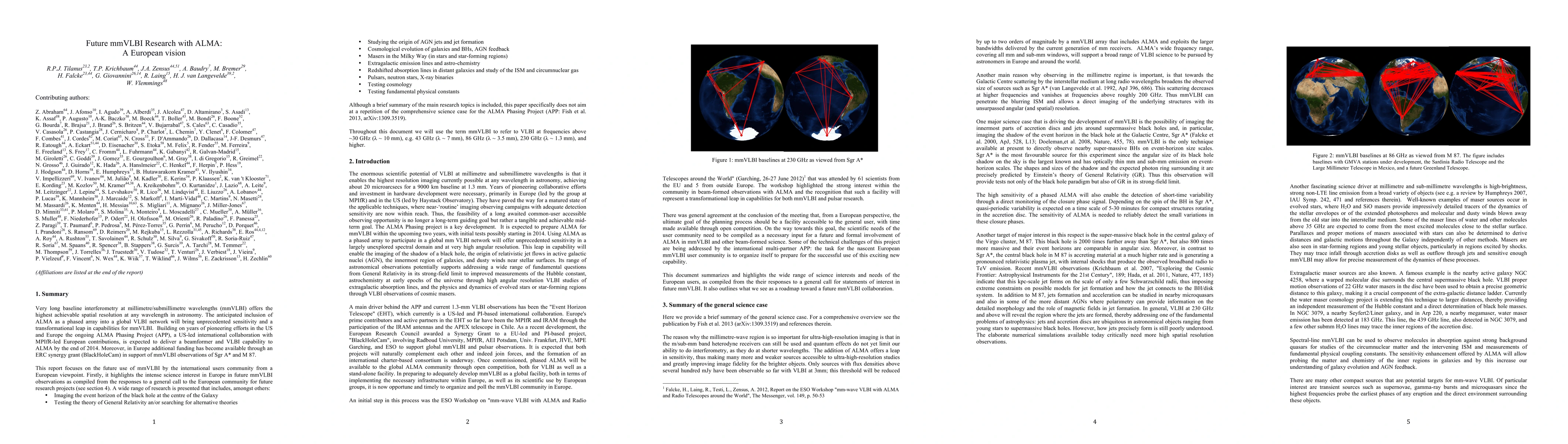 Very long baseline interferometry at millimetre/submillimetre wavelengths (mmVLBI) offers the highest achievable spatial resolution at any wavelength in astronomy. The anticipated inclusion of ALMA as a phased array into a global VLBI network will bring unprecedented sensitivity and a transformational leap in capabilities for mmVLBI. Building on years of pioneering efforts in the US and Europe the ongoing ALMA Phasing Project (APP), a US-led international collaboration with MPIfR-led European contributions, is expected to deliver a beamformer and VLBI capability to ALMA by the end of 2014 (APP: Fish et al. 2013, arXiv:1309.3519). This report focuses on the future use of mmVLBI by the international users community from a European viewpoint. Firstly, it highlights the intense science interest in Europe in future mmVLBI observations as compiled from the responses to a general call to the European community for future research projects. A wide range of research is presented that includes, amongst others: - Imaging the event horizon of the black hole at the centre of the Galaxy - Testing the theory of General Relativity an/or searching for alternative theories - Studying the origin of AGN jets and jet formation - Cosmological evolution of galaxies and BHs, AGN feedback - Masers in the Milky Way (in stars and star-forming regions) - Extragalactic emission lines and astro-chemistry - Redshifted absorption lines in distant galaxies and study of the ISM and circumnuclear gas - Pulsars, neutron stars, X-ray binaries - Testing cosmology - Testing fundamental physical constants