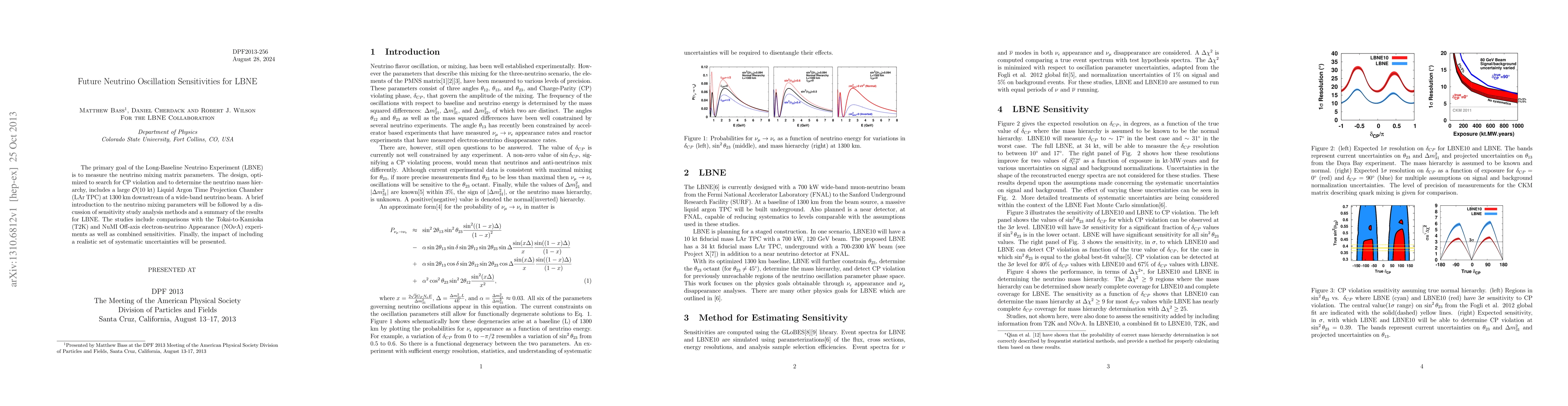 The Long-Baseline Neutrino Experiment (LBNE) aims to measure neutrino mixing parameters, focusing on CP violation and mass hierarchy. Sensitivity studies show LBNE's potential to outperform T2K and NOνA, with significant improvements when systematic uncertainties are considered.