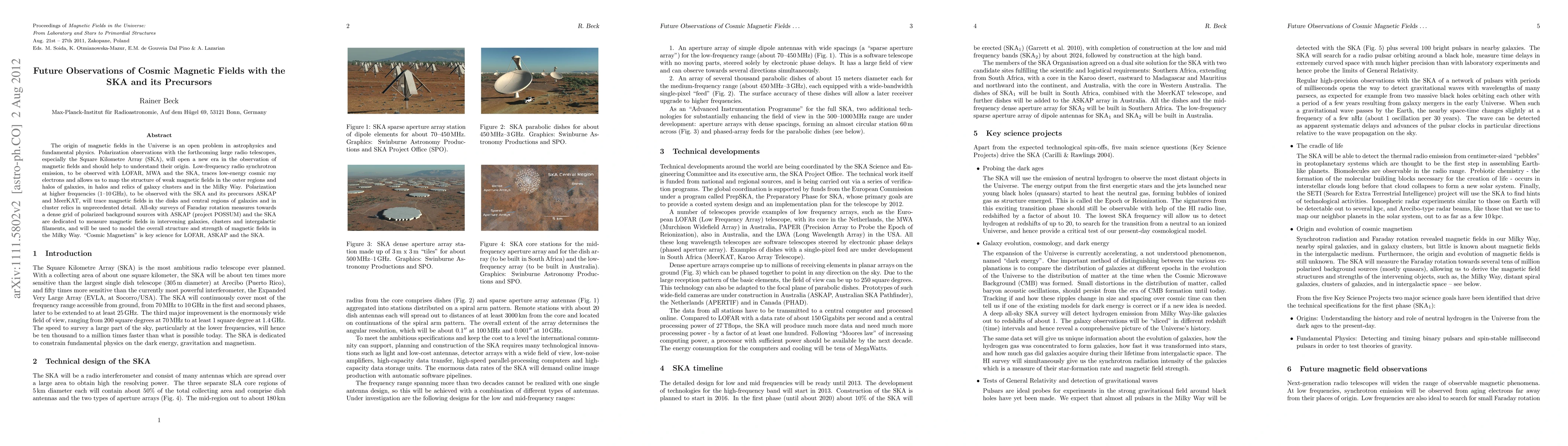 The origin of magnetic fields in the Universe is an open problem in astrophysics and fundamental physics. Polarization observations with the forthcoming large radio telescopes, especially the Square Kilometre Array (SKA), will open a new era in the observation of magnetic fields and should help to understand their origin. Low-frequency radio synchrotron emission, to be observed with LOFAR, MWA and the SKA, traces low-energy cosmic ray electrons and allows us to map the structure of weak magnetic fields in the outer regions and halos of galaxies, in halos and relics of galaxy clusters and in the Milky Way. Polarization at higher frequencies (1-10 GHz), to be observed with the SKA and its precursors ASKAP and MeerKAT, will trace magnetic fields in the disks and central regions of galaxies and in cluster relics in unprecedented detail. All-sky surveys of Faraday rotation measures towards a dense grid of polarized background sources with ASKAP (project POSSUM) and the SKA are dedicated to measure magnetic fields in intervening galaxies, clusters and intergalactic filaments, and will be used to model the overall structure and strength of magnetic fields in the Milky Way. "Cosmic Magnetism" is key science for LOFAR, ASKAP and the SKA.