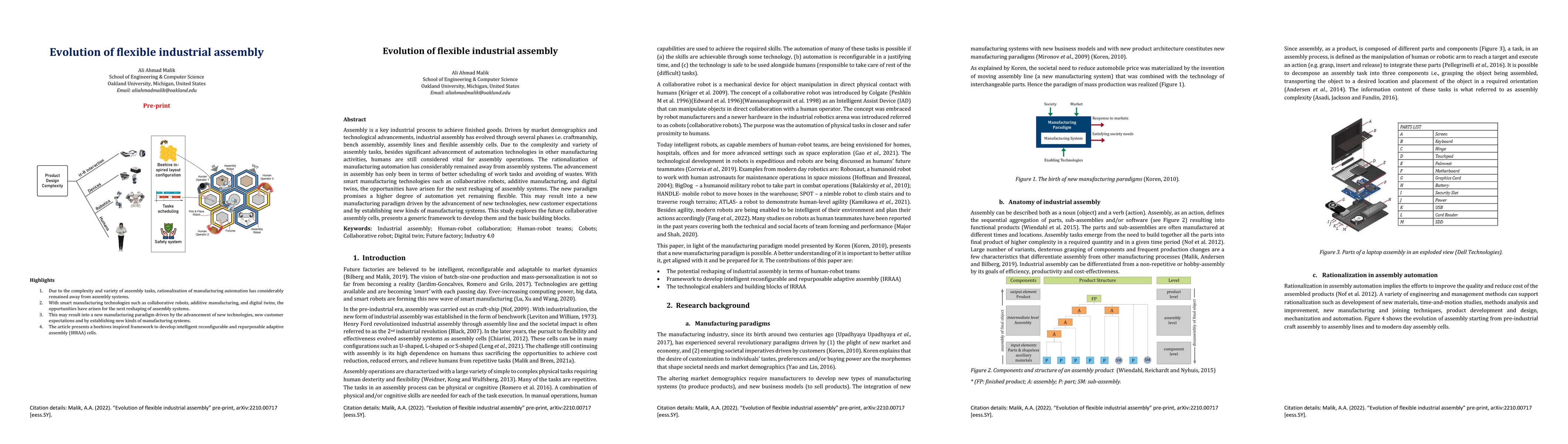 This paper explores the future of industrial assembly through Intelligent Reconfigurable & Repurposable Adaptive Assembly (IRRAA) systems, emphasizing the potential for advanced automation technologies to create flexible, collaborative assembly cells that meet evolving customer demands and manufacturing needs. The study proposes a framework for developing these next-generation assembly systems.