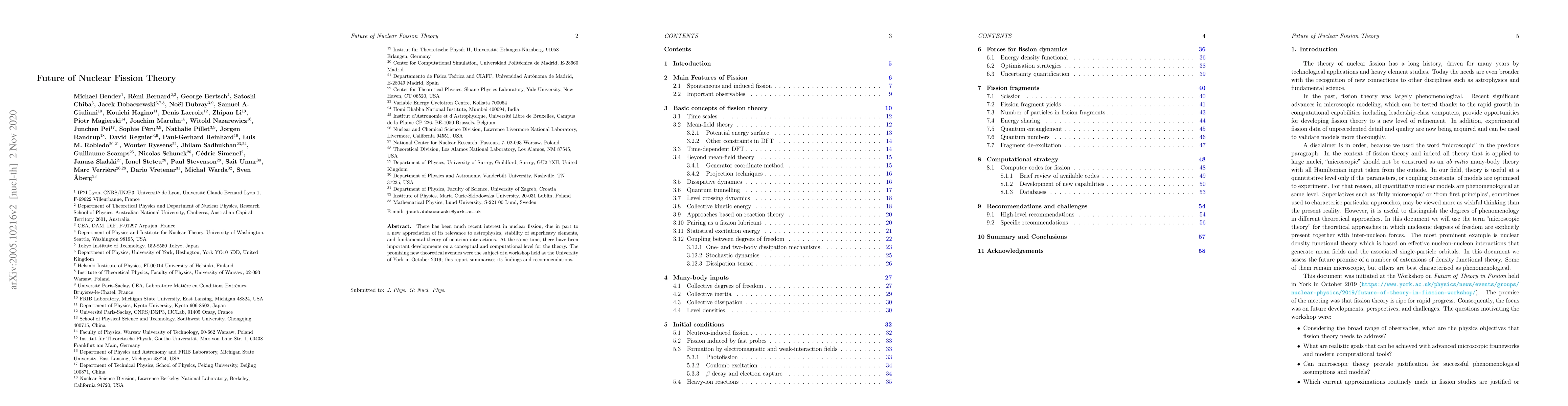 There has been much recent interest in nuclear fission, due in part to a new appreciation of its relevance to astrophysics, stability of superheavy elements, and fundamental theory of neutrino interactions. At the same time, there have been important developments on a conceptual and computational level for the theory. The promising new theoretical avenues were the subject of a workshop held at the University of York in October 2019; this report summarises its findings and recommendations.