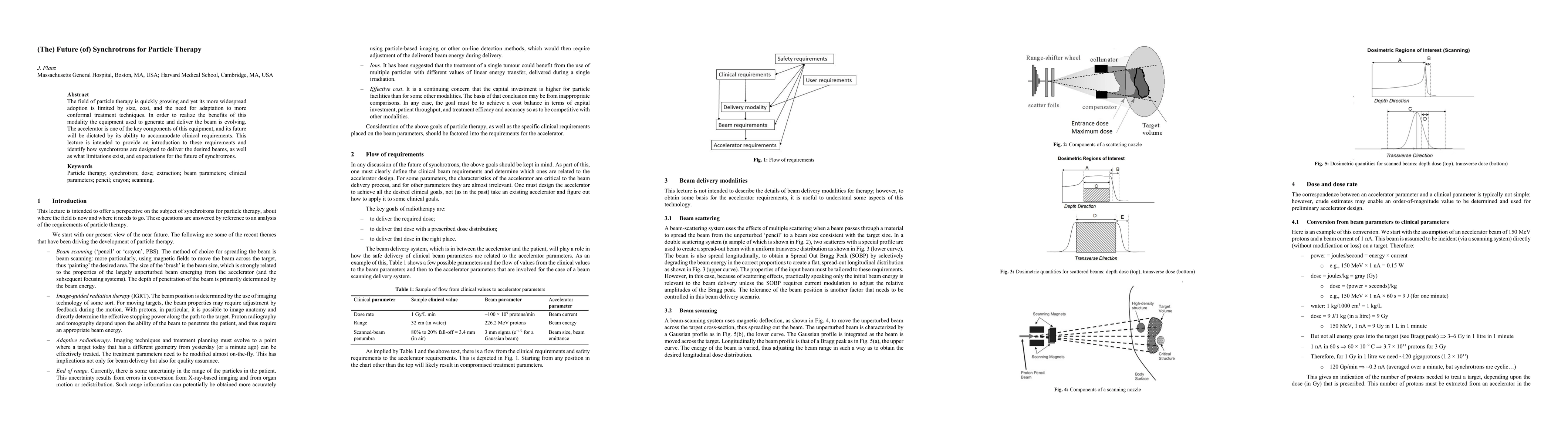 The field of particle therapy is quickly growing and yet it's more widespread adoption is limited by size, cost and adaptation to the more conformal treatment techniques. In order to realize the benefits of this modality the equipment used to generate and deliver the beam is evolving. The accelerator is one of the key components and its future is dictated by the ability to accommodate the clinical requirements. This lecture is intended to provide an introduction to these requirements and identify how synchrotrons are designed to deliver the desired beams as well as what limitations exist and expectations for the future of synchrotrons.