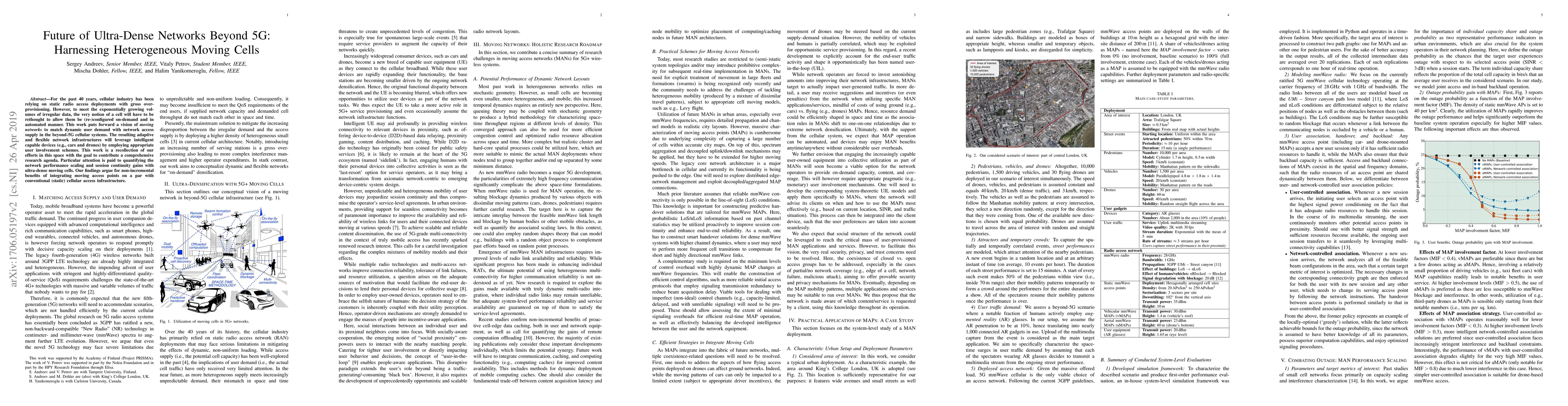 This work distinguishes itself by emphasizing the potential of heterogeneous moving cells, including vehicles and drones, as capable access points that can dynamically adapt to user demand and improve network performance, offering a novel perspective on future cellular network architectures.