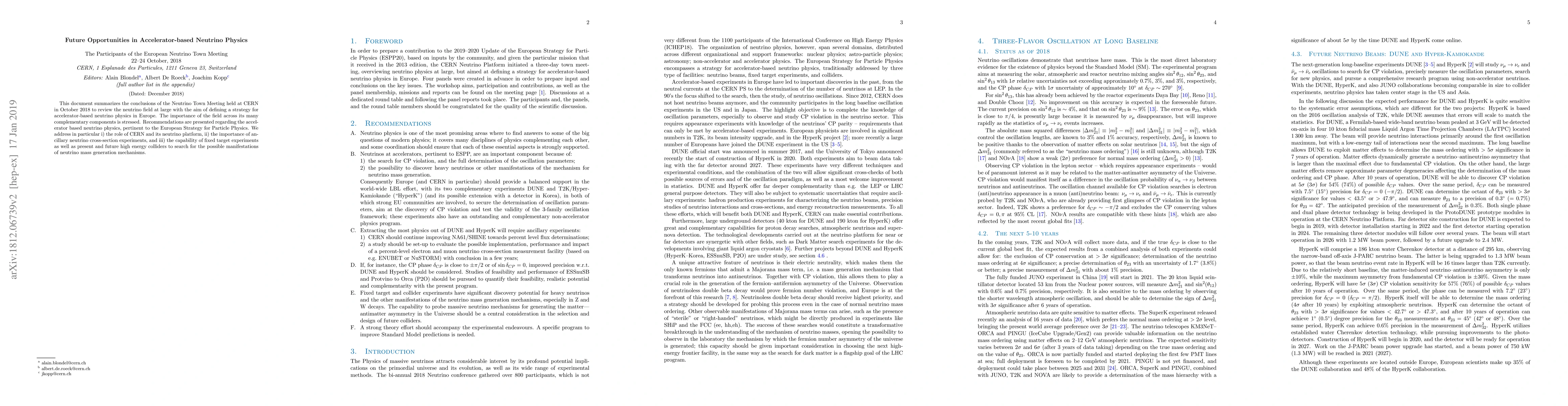 This document summarizes the conclusions of the Neutrino Town Meeting held at CERN in October 2018 to review the neutrino field at large with the aim of defining a strategy for accelerator-based neutrino physics in Europe. The importance of the field across its many complementary components is stressed. Recommendations are presented regarding the accelerator based neutrino physics, pertinent to the European Strategy for Particle Physics. We address in particular i) the role of CERN and its neutrino platform, ii) the importance of ancillary neutrino cross-section experiments, and iii) the capability of fixed target experiments as well as present and future high energy colliders to search for the possible manifestations of neutrino mass generation mechanisms.