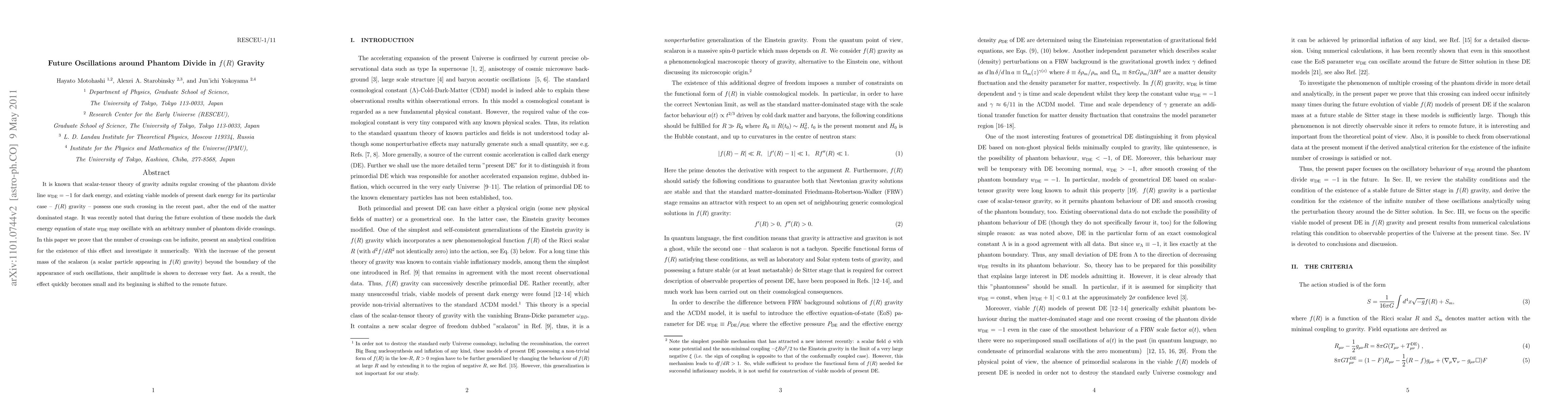 This paper explores future oscillations in $f(R)$ gravity models where the dark energy equation of state crosses the phantom divide infinitely. It establishes an analytical condition for these oscillations and demonstrates that their amplitude decreases rapidly with increasing scalaron mass, delaying the effect to a distant future.